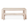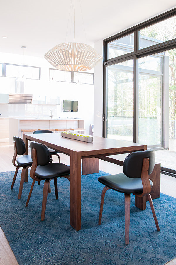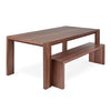 The Plank is a modern interpretation of the traditional harvest table, with warm, walnut grain wood finish, and legs that showcase solid wood endgrain flush with the table top. Matching, nested bench sold separately.