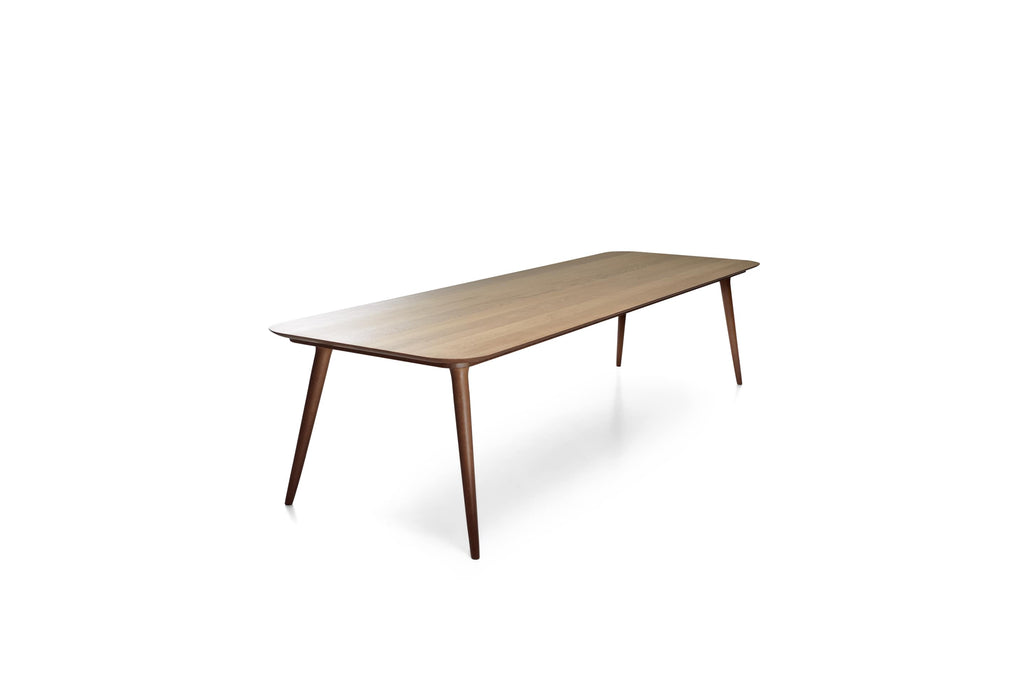 The Zio Table unites the strong, yet light look of stained natural oak with the beauty of organic shapes, finished off with straight modern cuts.