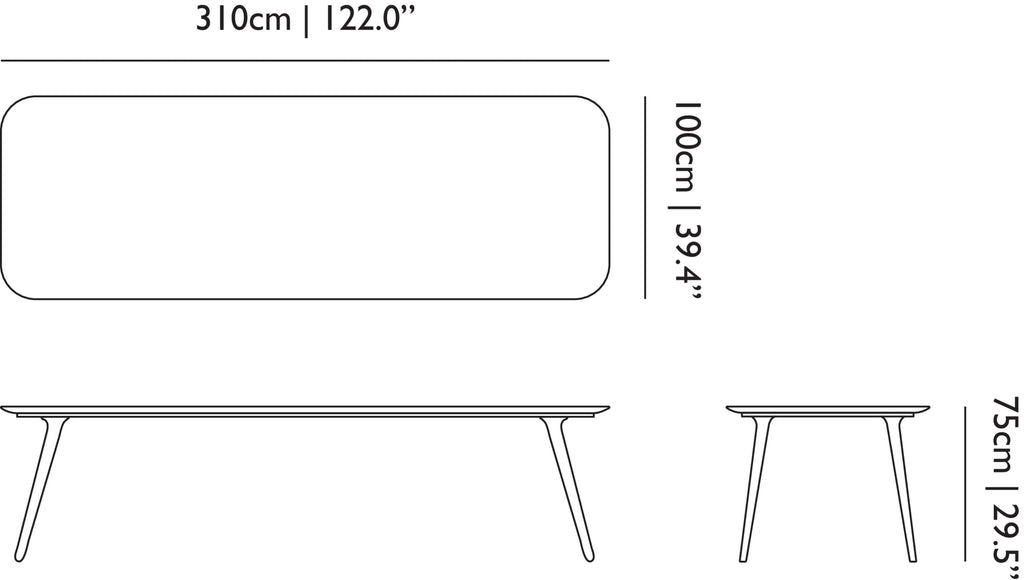 310: 122" wide by 39.4" deep by 29.5" tall