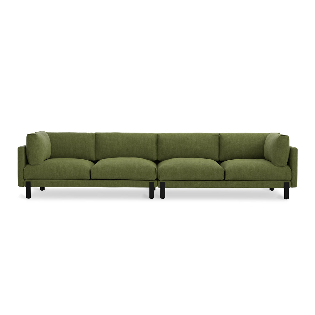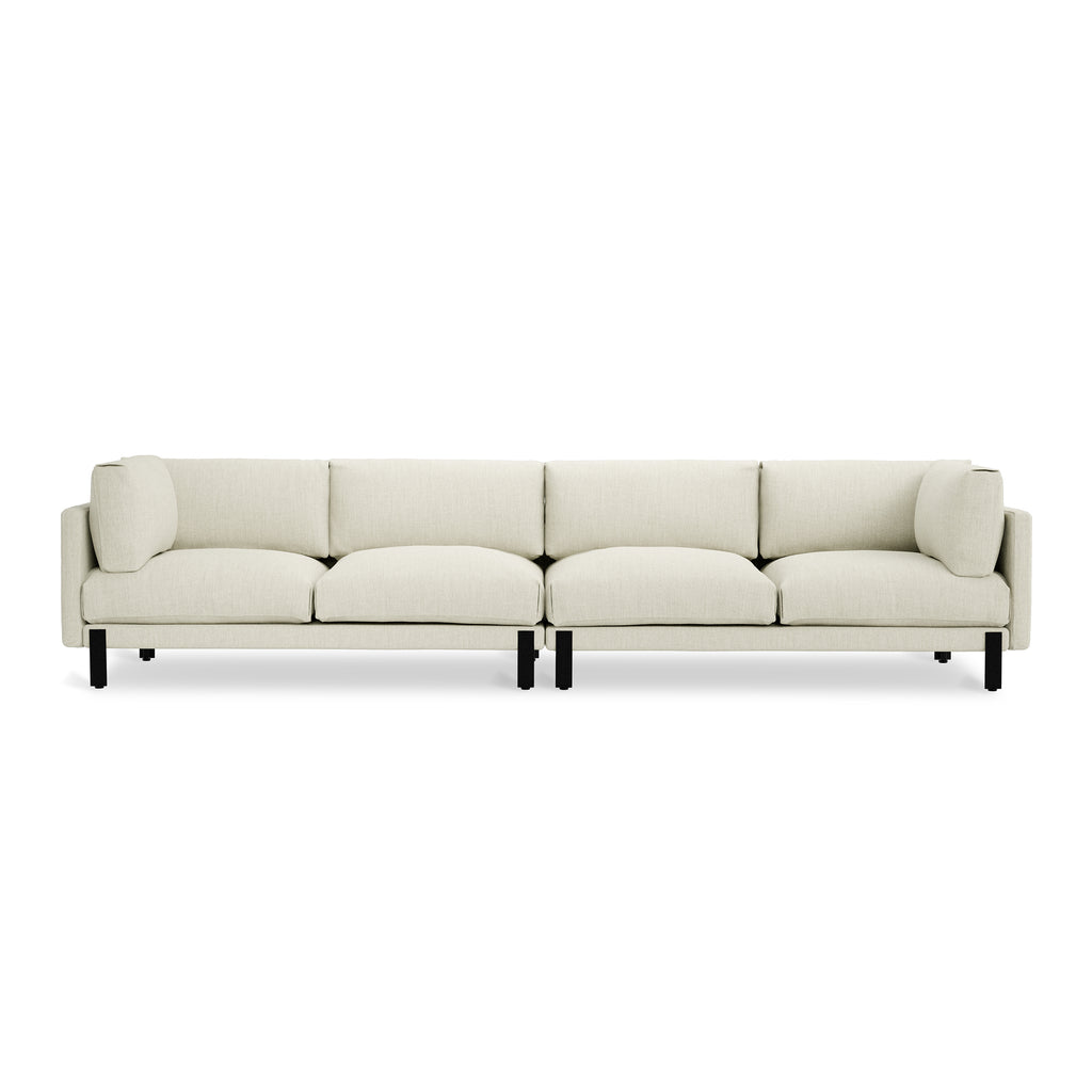 The Silverlake Upholstery Collection is a Scandinavian-inspired seating design that strikes an elegant balance between minimalist styling and a casual, inviting feel. The design features a slender tuxedo frame, and plush seat and back cushions filled with our eco-friendly, signature PET fill. The back and side cushions can be adjusted to your preferred angle, while the generous seat depth enhances the sofa's or sectional's comfort. Subtle features like pleated fabric details on cushion corners and architectural, black powder-coated steel legs complete Silverlake, laid-back modern aesthetic. The collection is a restful haven for any busy home, office or lobby. The frames are constructed with kiln-dried FSC®-Certified hardwood in support of responsible forest management. Silverlake uses a clean, ultra soft, long-strand fiber fill material that offers the comfort and feel of traditional waterfowl down. This material is created through a process that benefits the environment by diverting 929 plastic bottles away from landfills, waterways and oceans for each Silverlake Sectional we build.