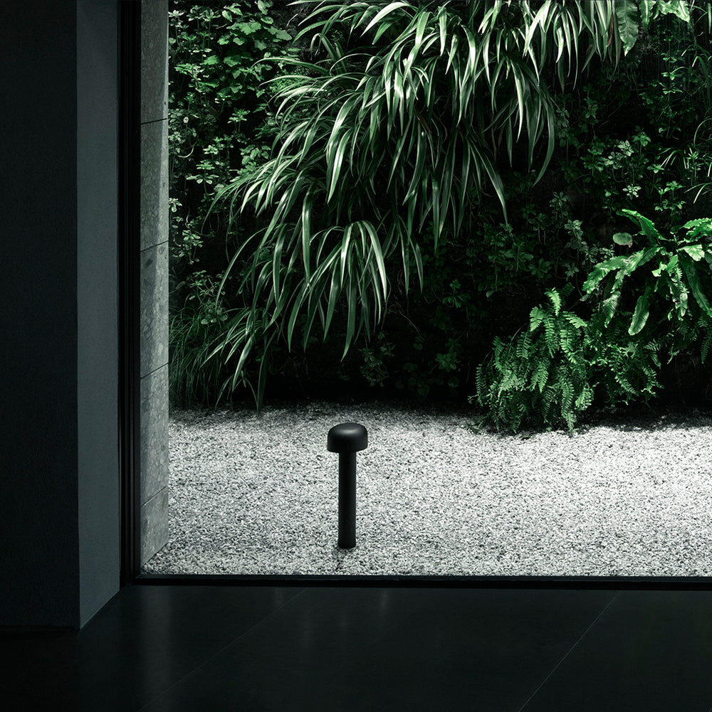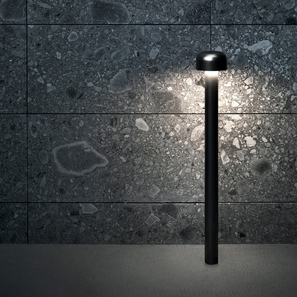 The new Bellhop Bollard diffuses a soft light designed to illuminate outdoor landscapes or pathways. Originally conceived as a table lamp for the London Design Museum restaurant, Bellhop moves outdoors. Reminiscent of a hatted hotel porter, Edward Barber & Jay Osgerby’s contemporary design offers diffused lighting which enriches landscapes and architecture. Bellhop utilizes the latest generation LED technology installed around the lamp head, protected by an opal optic diffuser, allowing a smooth and homogeneous light to radiate all around the pole.