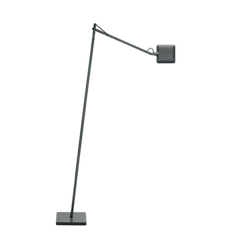 Part of the popular Kelvin LED family, the Kelvin LED floor lamp is dimmable and features the collection’s signature square head and utilizes the latest technology to provide precise customization of output. The three-step on/off switch utilizes Soft Touch technology, and the base cover is injection-printed PC (polycarbonate). The head is directional, the counterweight is an iron cut painted through a process of cataphoresis. The base separates from the lamp body, held in place with a safety-locking pin.