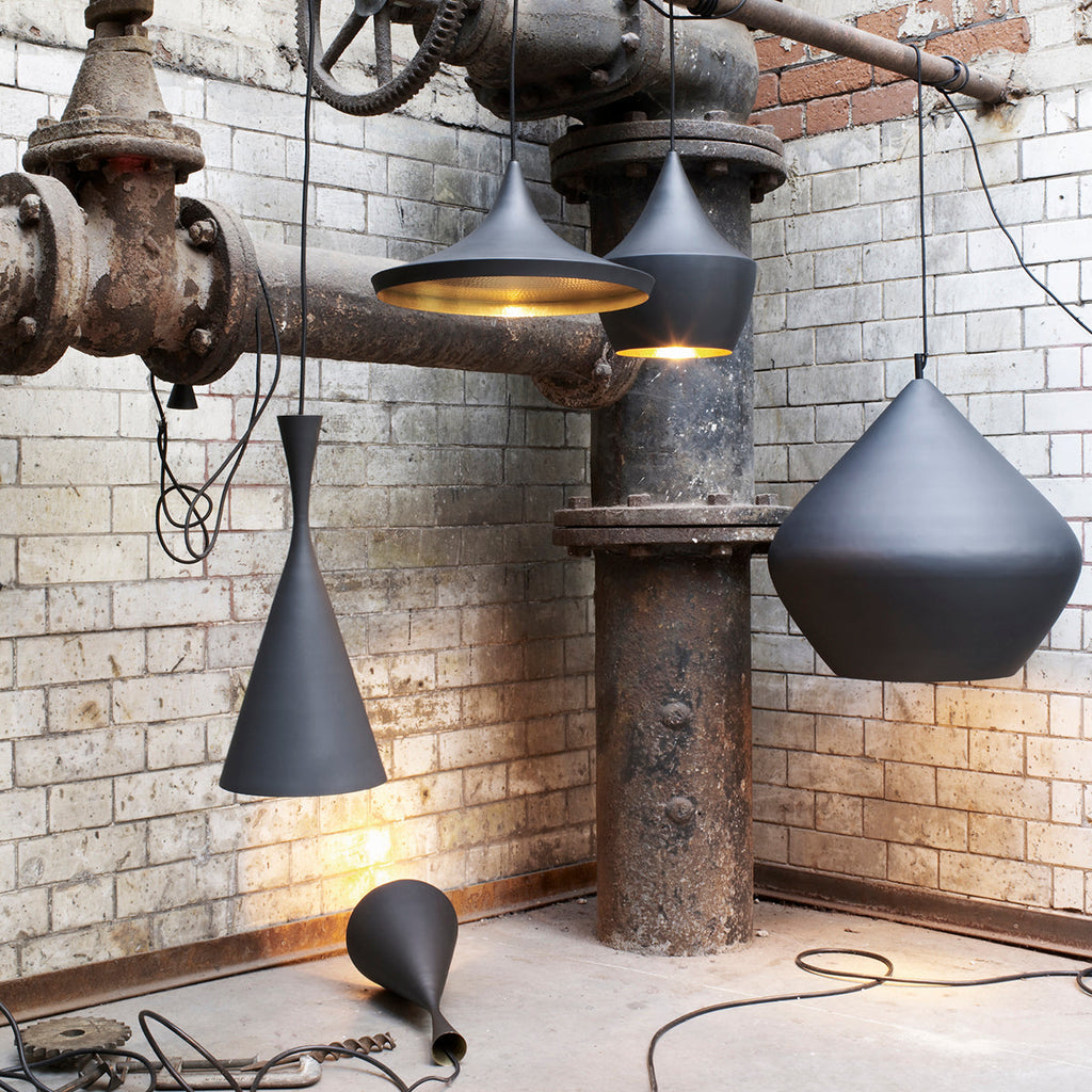 The Beat Lights can be used in many different configurations to create a dramatic statement. Hang them individually or as a group using one or more of the shapes and one of our round or linear pendant systems.