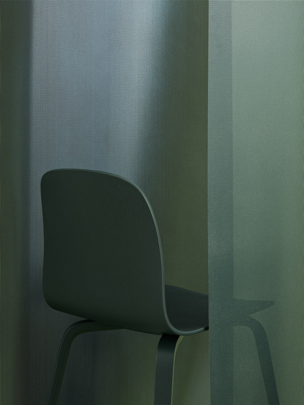 Bringing lightness into design, the Visu Chair Wood Base combines ergonomic and functional expressions with a quiet silhouette. The shell is rendered in form-pressed veneer wood while the wooden legs provide a sleek yet sturdy base.