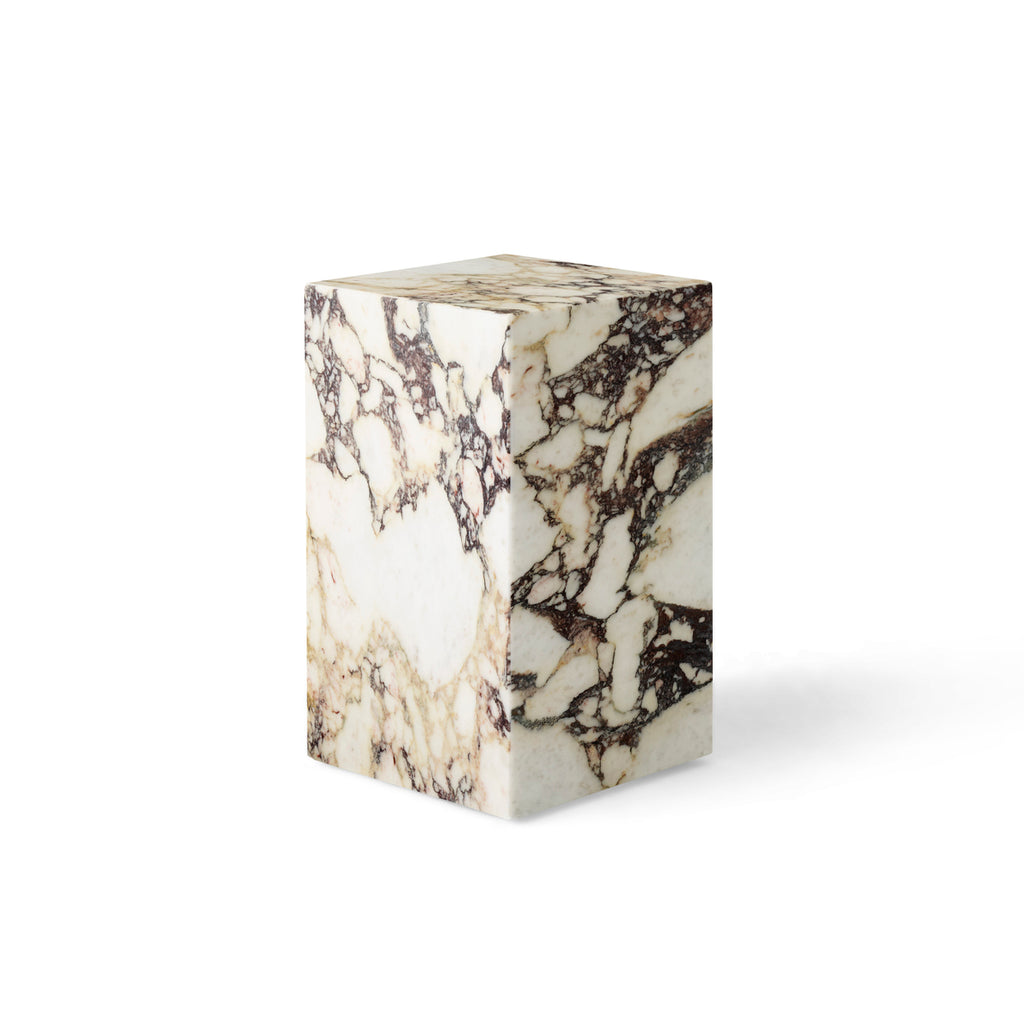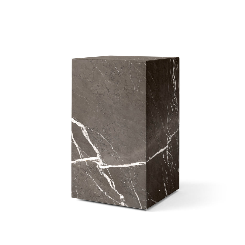 As versatile as it is timeless, the marble Plinth serves the dual purpose of being a beautiful, sculptural piece on its own and highlighting whatever objects rest upon it. The honed marble carries an air of sophistication and elegance to elevate any space. Designed by Norm Architects as a tribute to the particular beauty of marble, the Plinth comes in cubic, tall, and low varieties, as well as a small range of colours including the new brown grey. The heaviness of the Plinth marble stands in contrast to the honed surface; light bounces off of the angles and falls across the tops, producing a spotlight-effect in any space. Though the lines of the podiums are sharp and clean, the naturalness of the marble is at the forefront of its visual identity, creating an intriguing contrast within each piece. From a side table in a private home to a place to display a vase of flowers in a restaurant, Plinth podiums provide an unparalleled surface.