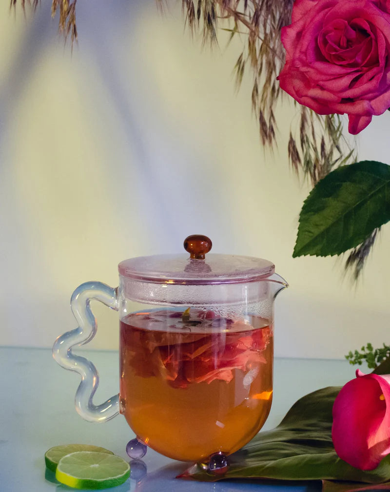 A collaboration with whole flower tea brand The Qi, this playful teapot was designed to celebrate the beauty of transformation as teas, flower or any, transform as they steep.