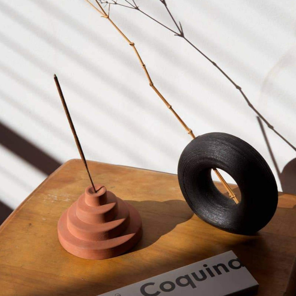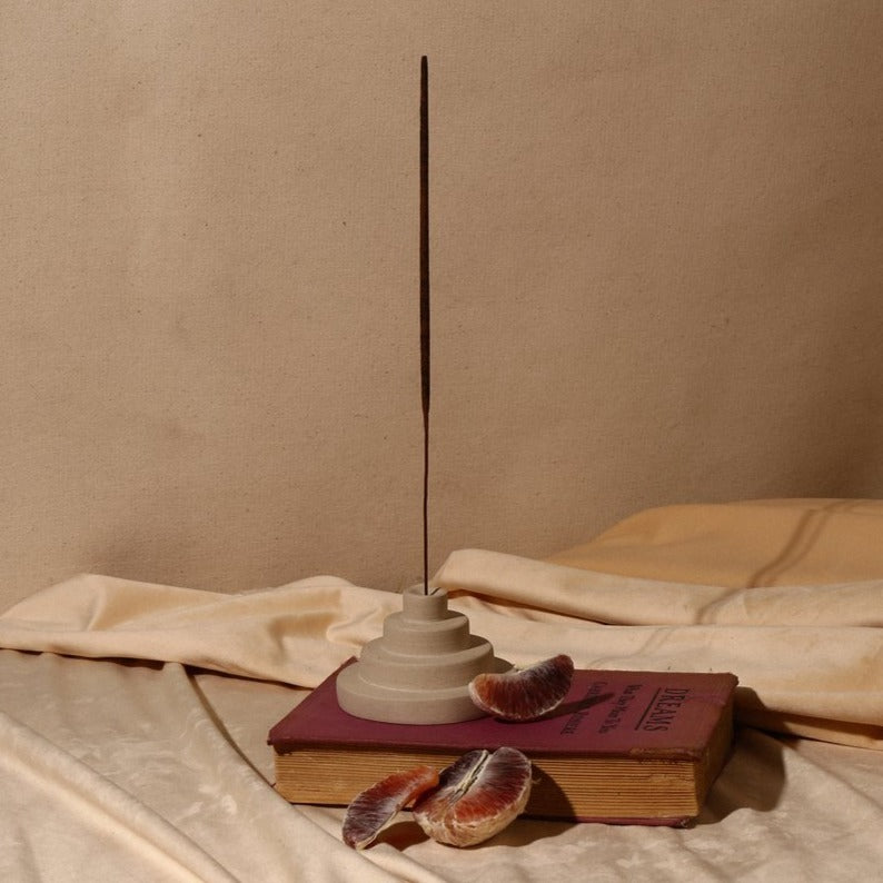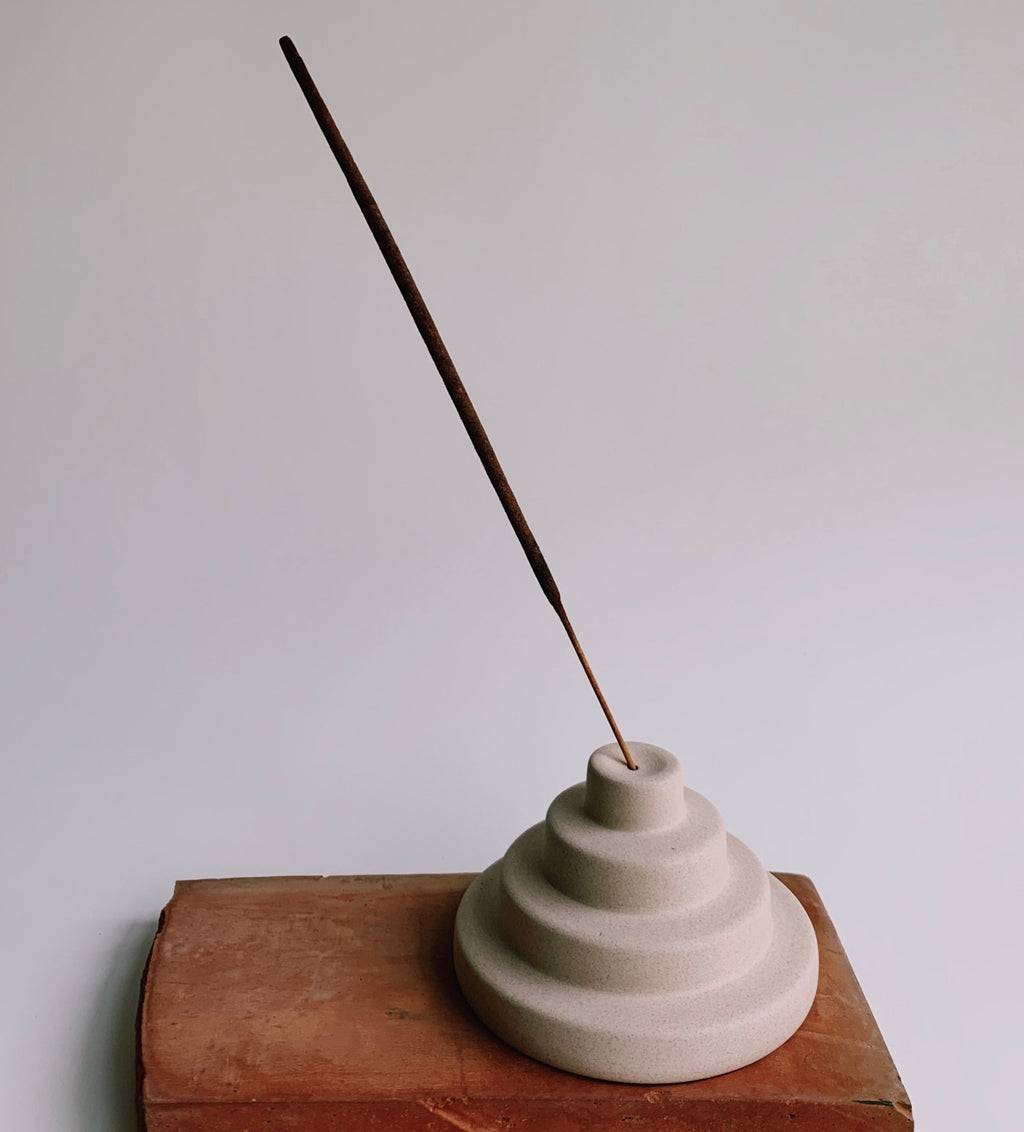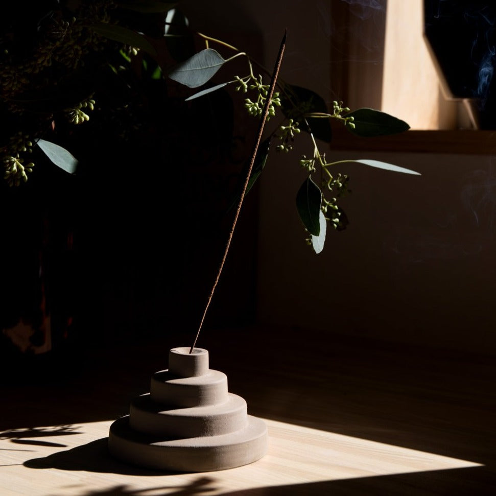 Inspired by Mesopotamian architecture, the incense holder perfectly suspends stick incense and is a perfect pedestal to watch your incense burn.