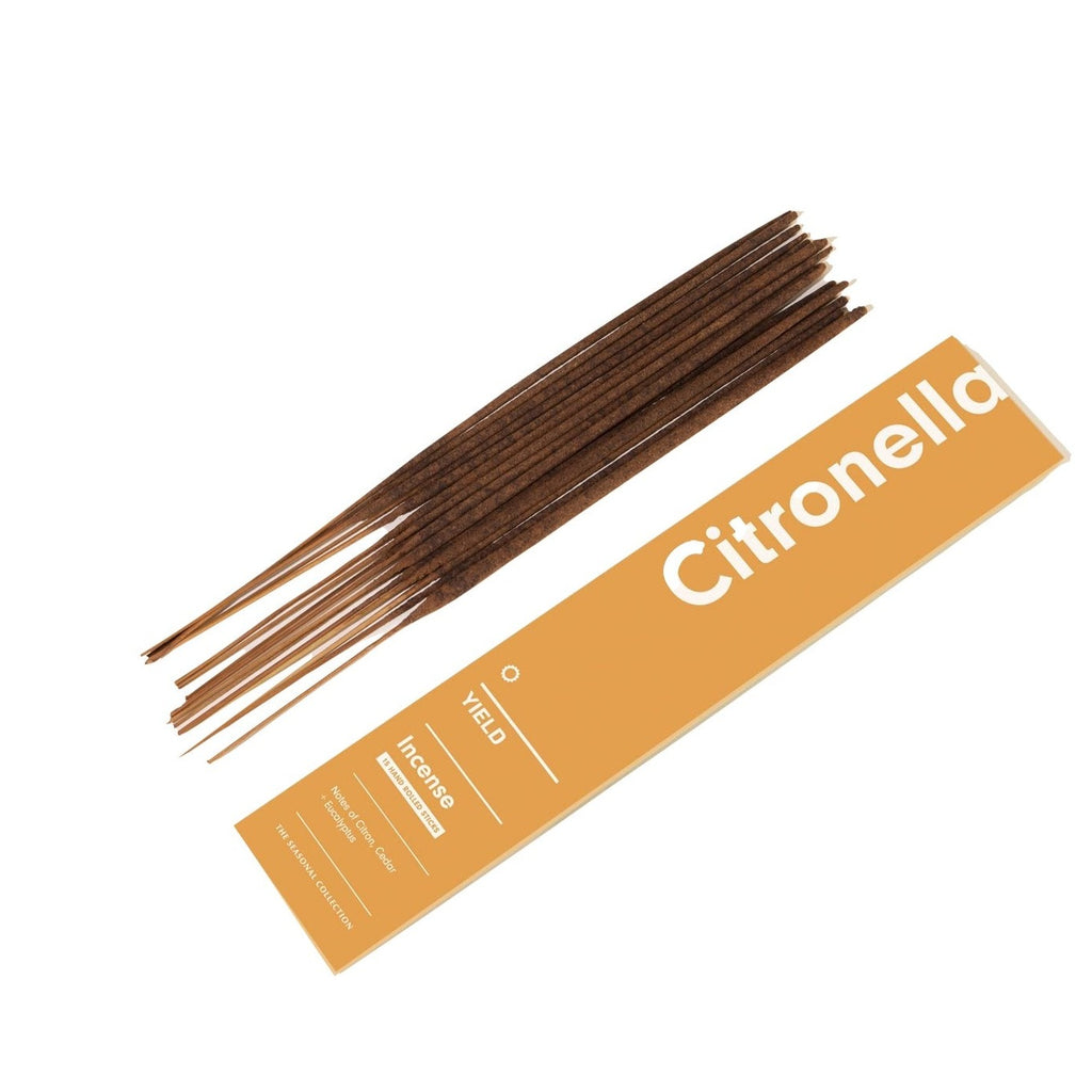 Inspired by warm nights in the backyard, our Citronella Collection adds ambiance and comfort to your outdoor routine. Each incense is naturally infused with a blend of Citronella, Eucalyptus, and Geranium essential oils that are pleasant on the senses while also warding off pesky insects.