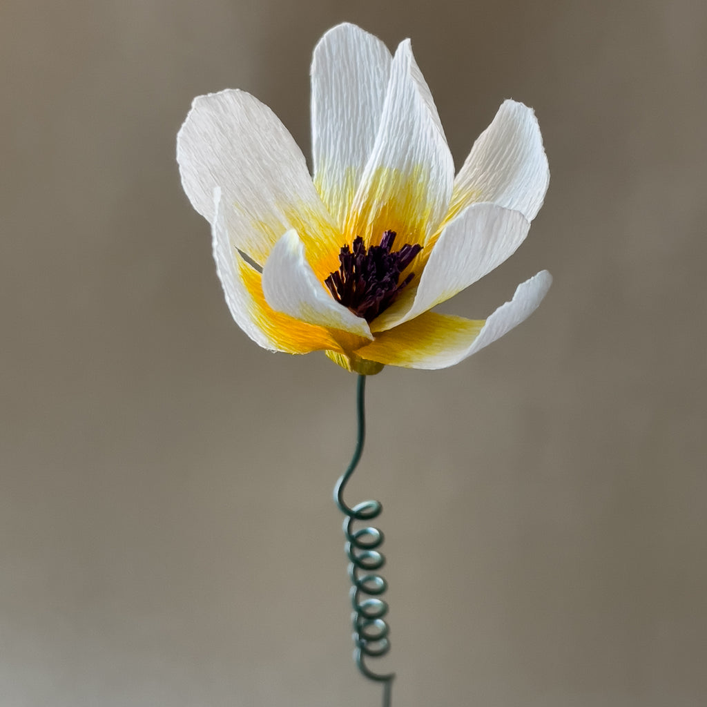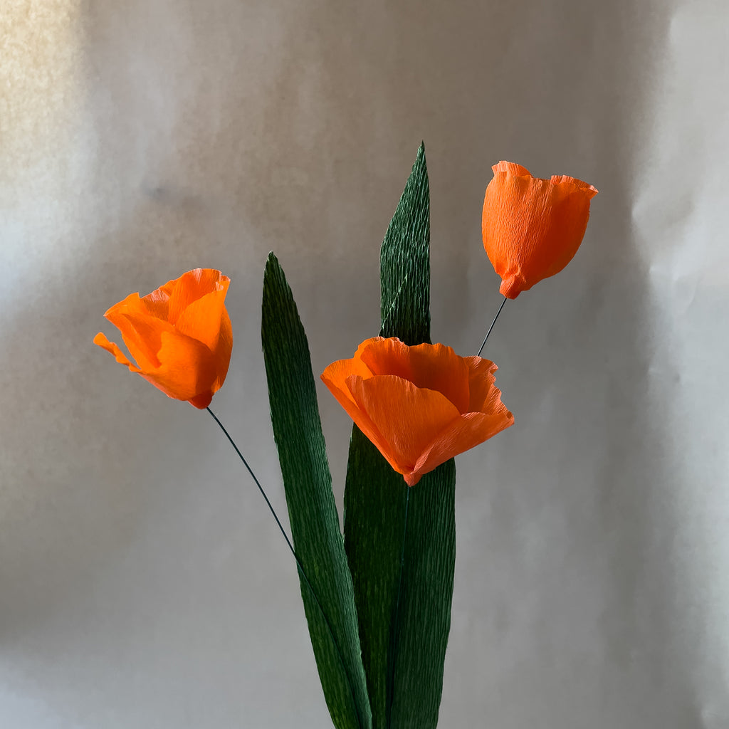 – Flowers are made of fine crepe paper and attached to a flexible wire stem.