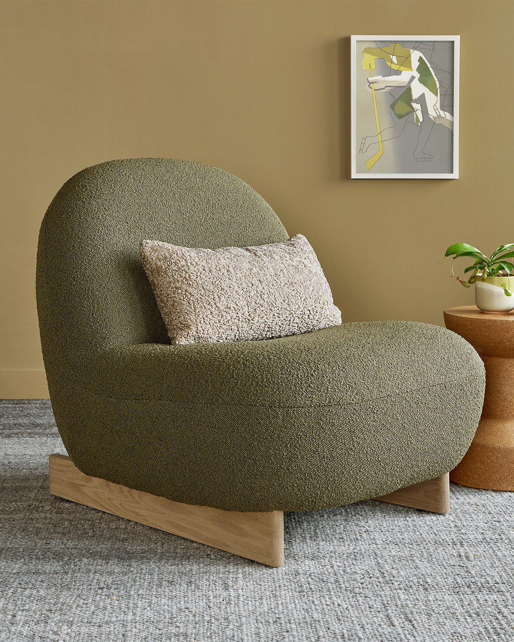 On the hunt for a cozy place to perch with a favorite book or a sunny spot to sip your morning coffee? Our Arlo chair is the (oh-so-stylish) answer to your design dilemma. Crafted in a nubby bouclé fabric with a solid oak sled base, this playful piece brings Scandinavian sophistication and shapely curves to your scheme in a scale that’s compact enough to style in your living room, bedroom, and beyond.