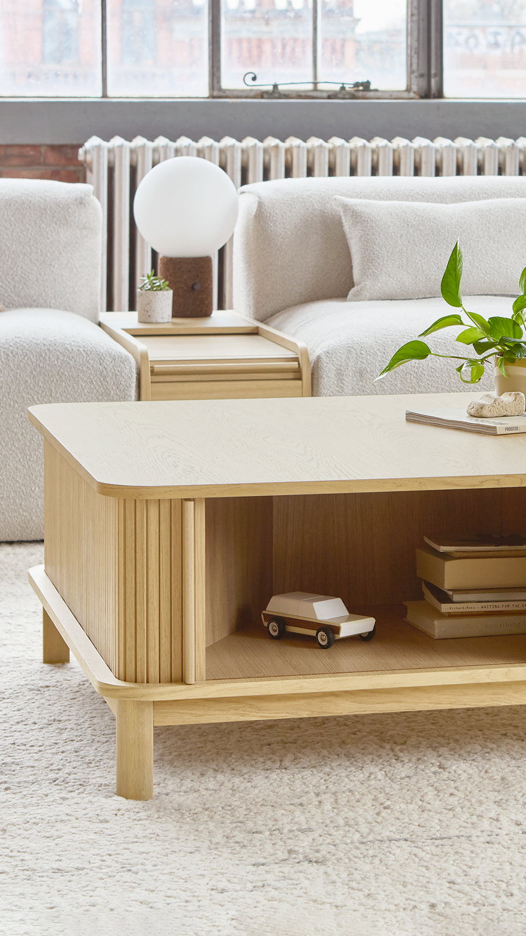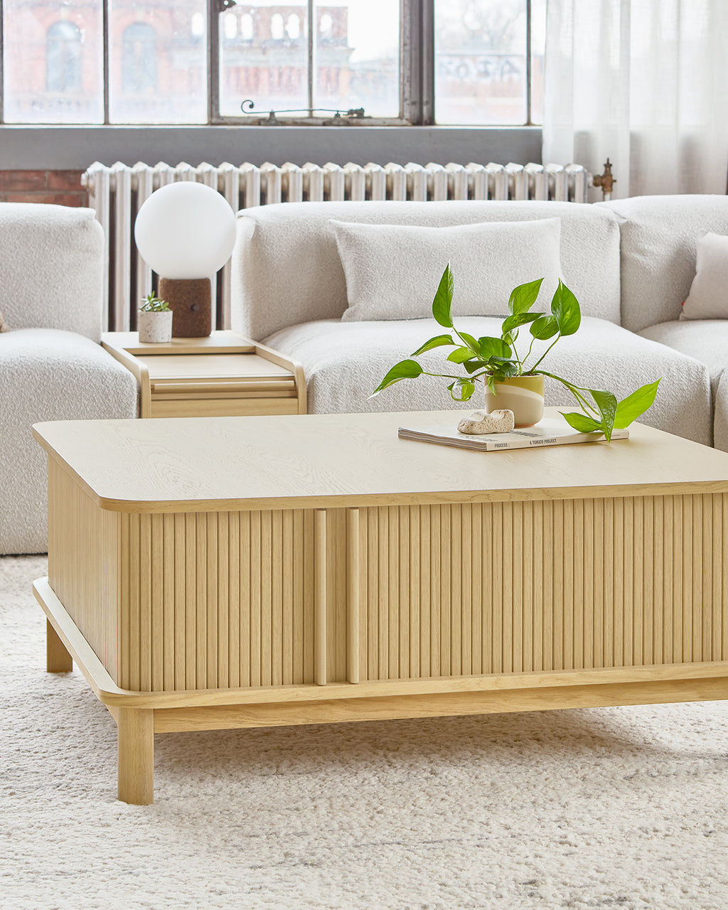Stylishly reveal or conceal with Ledger, a contemporary storage design that showcases gorgeous tambour wood sliding doors, elegant proportions and skilled craftsmanship. Whether you’re looking for a clever solution to conceal clutter or an attractive way to display objects and collectibles, Ledger provides the answer. The tambour doors, which slide smoothly on a continuous track around the perimeter, prove that beautiful form follows function, displaying a simplicity of design engineering without the use of hardware and fasteners. Components incorporate graceful curve details and warm woodgrain protected with an all-natural, zero VOC finish. Solid and engineered wood throughout is FSC ®-Certified, ensuring material is sourced from well managed forests to support a healthy environment.