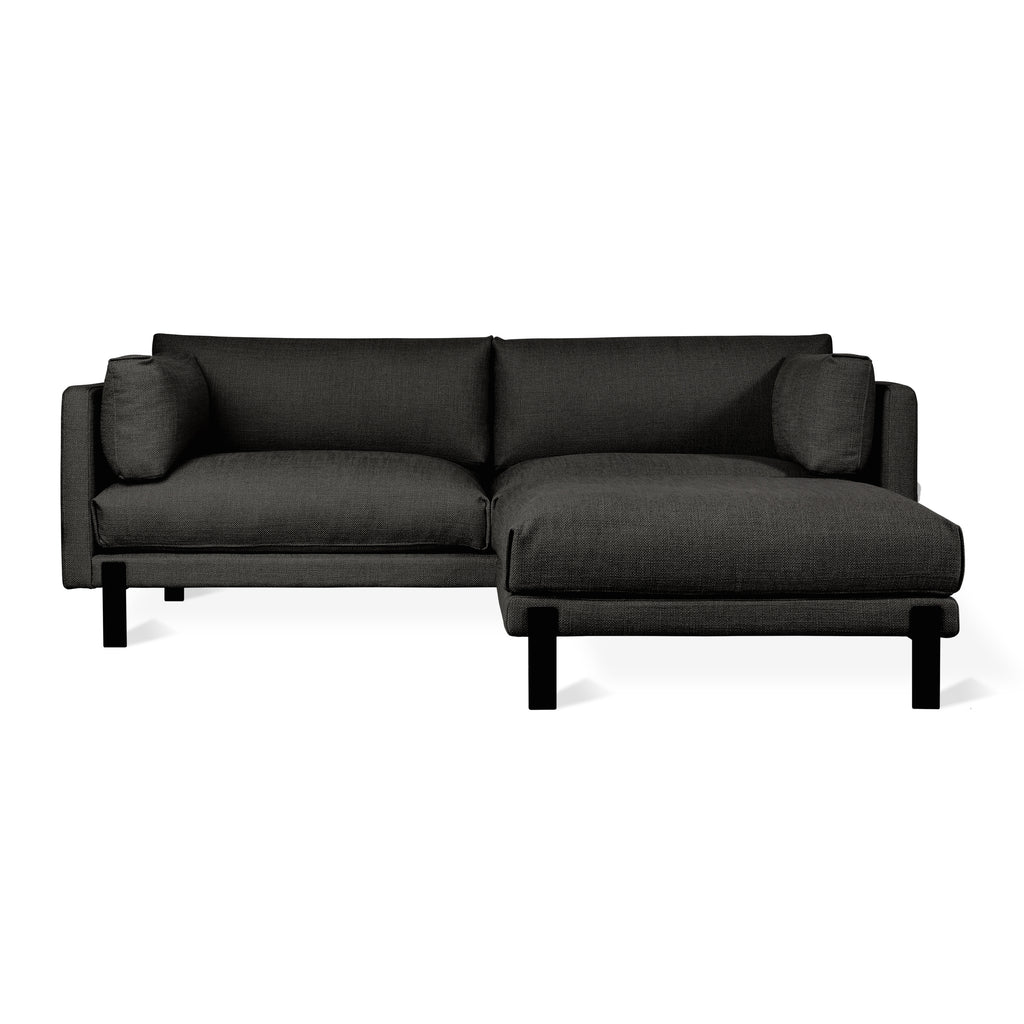 The Silverlake Upholstery Collection is a Scandinavian-inspired seating design that strikes an elegant balance between minimalist styling and a casual, inviting feel. The design features a slender tuxedo frame, and plush seat and back cushions filled with our eco-friendly, signature PET fill. The back and side cushions can be adjusted to your preferred angle, while the generous seat depth enhances the sofa's or sectional's comfort. Subtle features like pleated fabric details on cushion corners and architectural, black powder-coated steel legs complete Silverlake, laid-back modern aesthetic. The collection is a restful haven for any busy home, office or lobby. The frames are constructed with kiln-dried FSC®-Certified hardwood in support of responsible forest management. Silverlake uses a clean, ultra soft, long-strand fiber fill material that offers the comfort and feel of traditional waterfowl down. This material is created through a process that benefits the environment by diverting 929 plastic bottles away from landfills, waterways and oceans for each Silverlake Sectional we build.