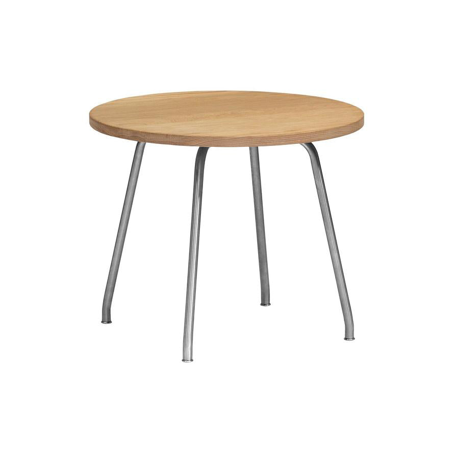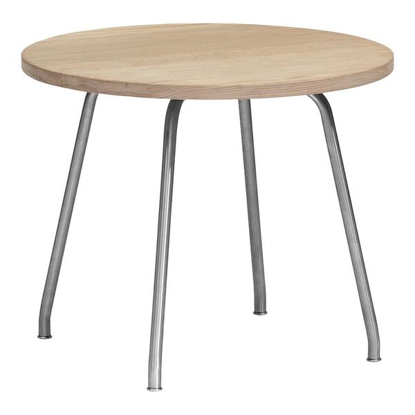 CH415 was designed by Hans J. Wegner in 1990 as an individual folding table designed for use between his fixed sofa rows at Copenhagen Airport. The Wegner table, with its round top, slim legs and small dimensions, is also very suitable in a home as a small low table which can easily be moved around.
