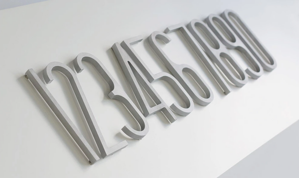 Same design as Lixht's steel numbers, but with more volume. The Aluminum version of the VM-001 House Number is machined to perfection from 1/2″ solid aluminum and bead-blasted for an even, finished look. Each digit has threads cut in the back side for easy, invisible mounting. The numbers are shipped with stainless steel studs and 5/16" aluminum spacer for the 8" Numbers, and 1/2" spacer for the 12" Numbers.