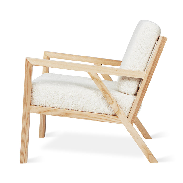 Inspired by the work of the Sarasota School of Architecture, the Truss is a mid-century styled chair that features a solid, natural Ash frame and finger joint detailing on the arms. At home in both modern and traditional spaces, this chair brings an appealing, laid-back style to any space. Available in fabric or Vegan AppleSkin™ Leather, our bio-based upholstery material that offers a quality, eco-friendly alternative to leather.