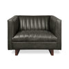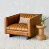 The Wallace Chair is a modern reinterpretation of the classic English Chesterfield design. The channel-stitched leather upholstery on the seat, back, and arms creates a surface that is both visually striking and remarkably comfortable. Piping details, sloping armrests and an angular wooden base add sculptural, contemporary flair, while luxurious channeled padding make it perfect for lounging. Available in two classic leathers, chosen for their unique grain characteristics that will age beautifully and develop a rich natural patina over time. Matches perfectly with the Wallace Sofa. Our leather hides are carefully selected for their raw, natural surface characteristics which make each piece unique.