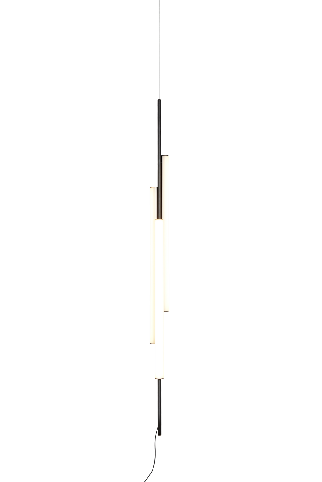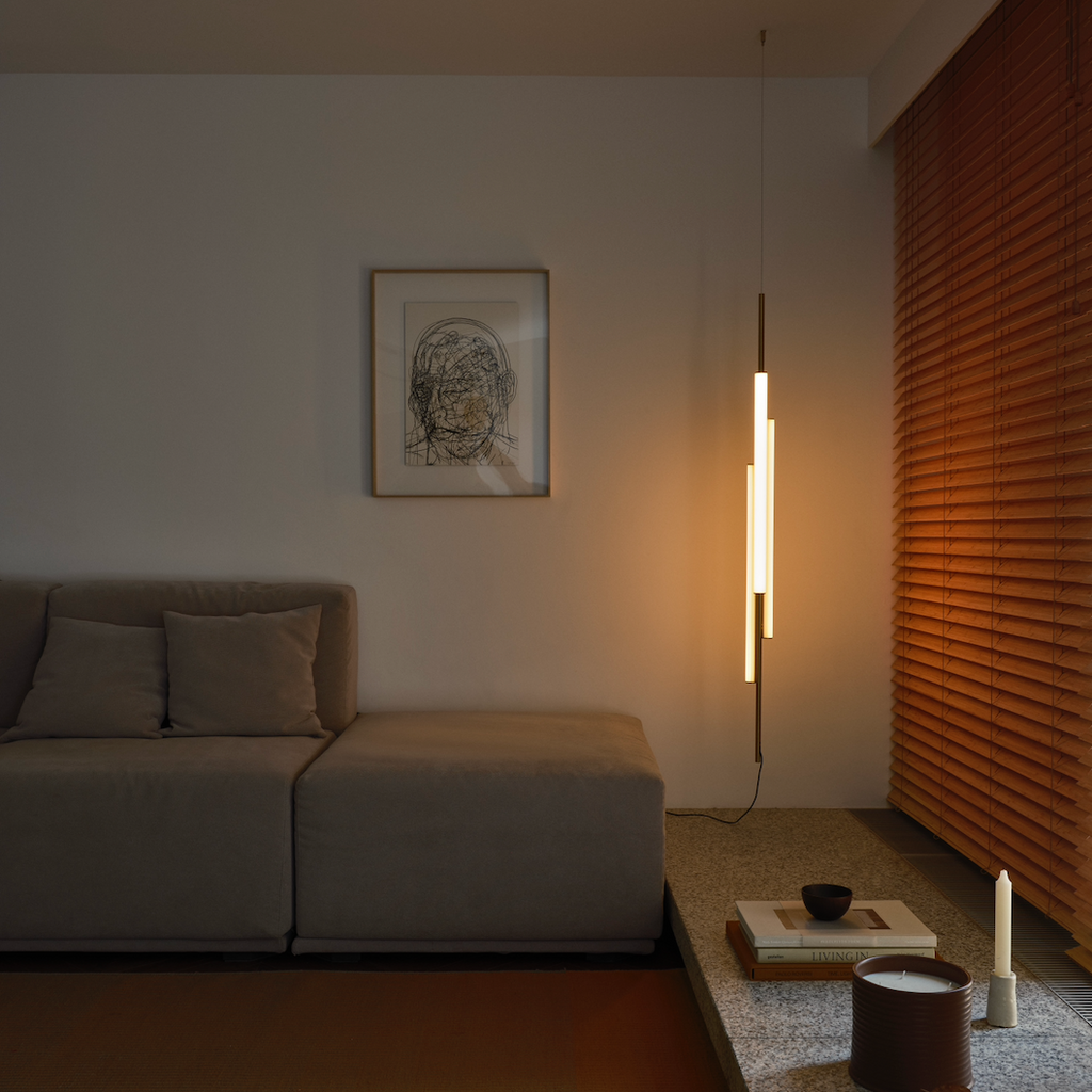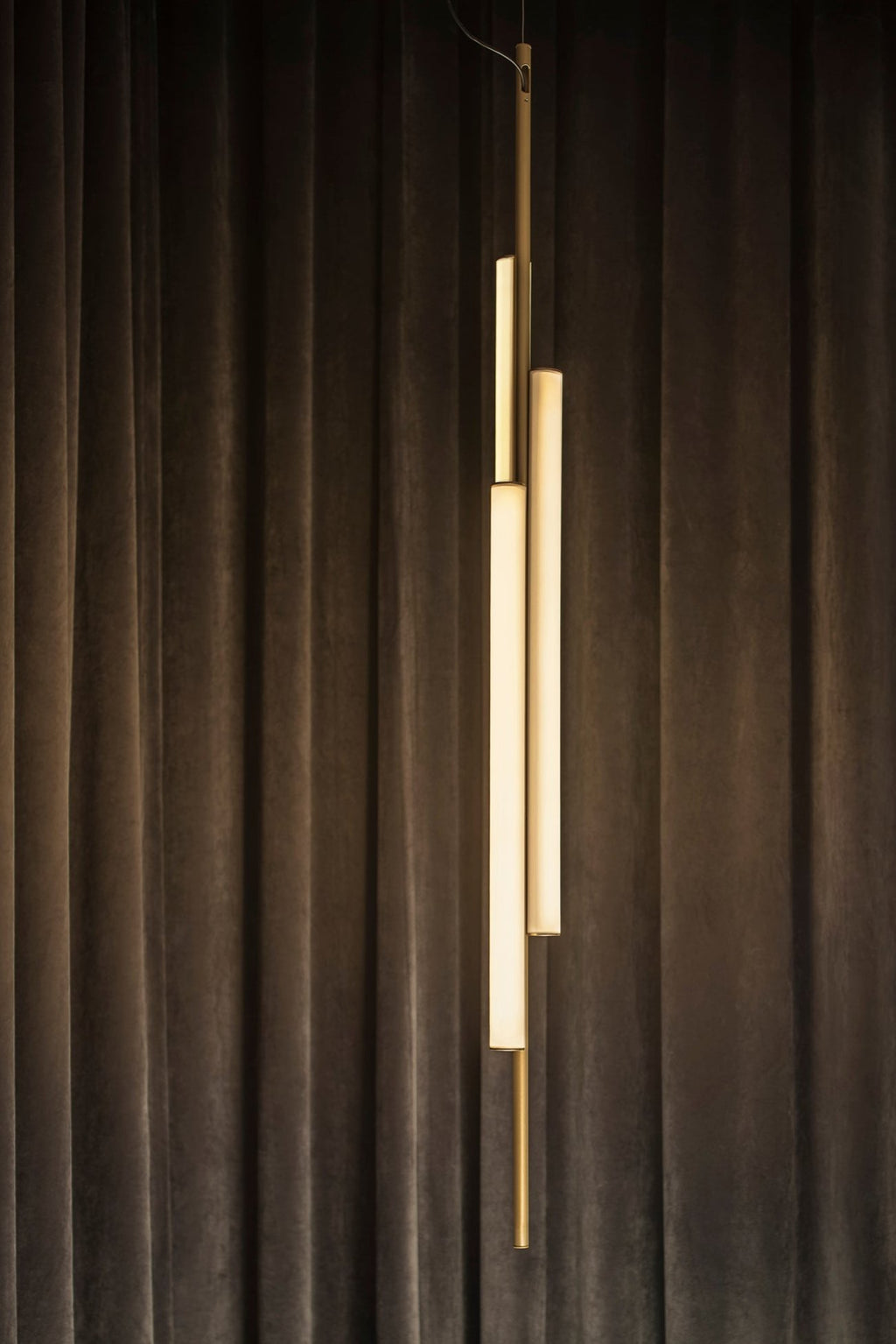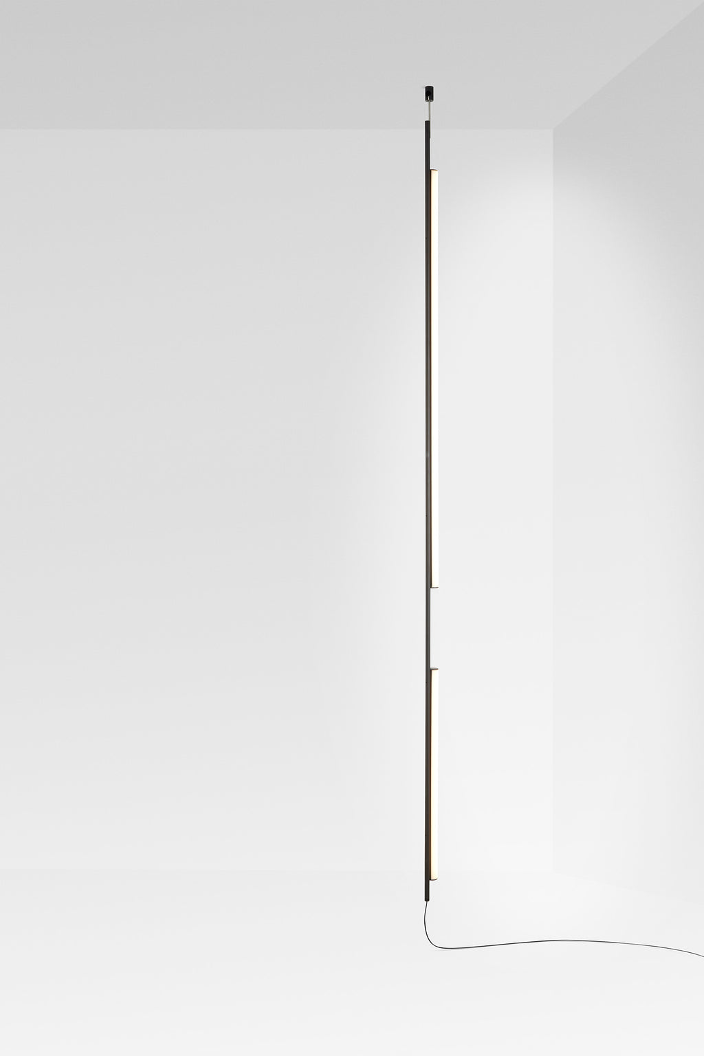 Ambrosia is essentially a line of light that can be converted into a modular system, capable of extending the illumination it offers to adapt to any space. A design that recovers and revisits the tube light, timeless, and updates it so that its simple structure and diffuse lighting add beauty to any space. This collection expands on its possibilities by proposing a change in the plane of light, from horizontal to vertical.