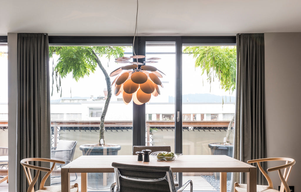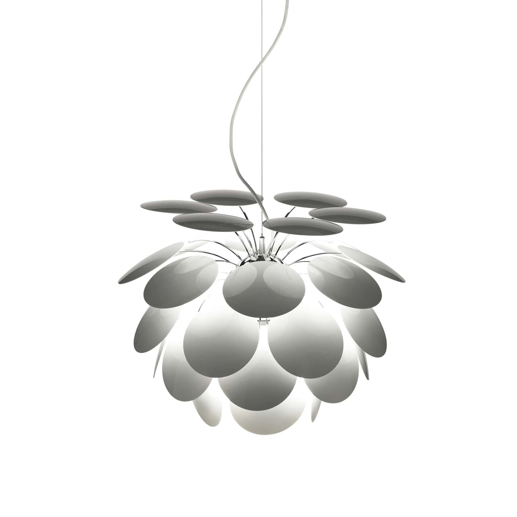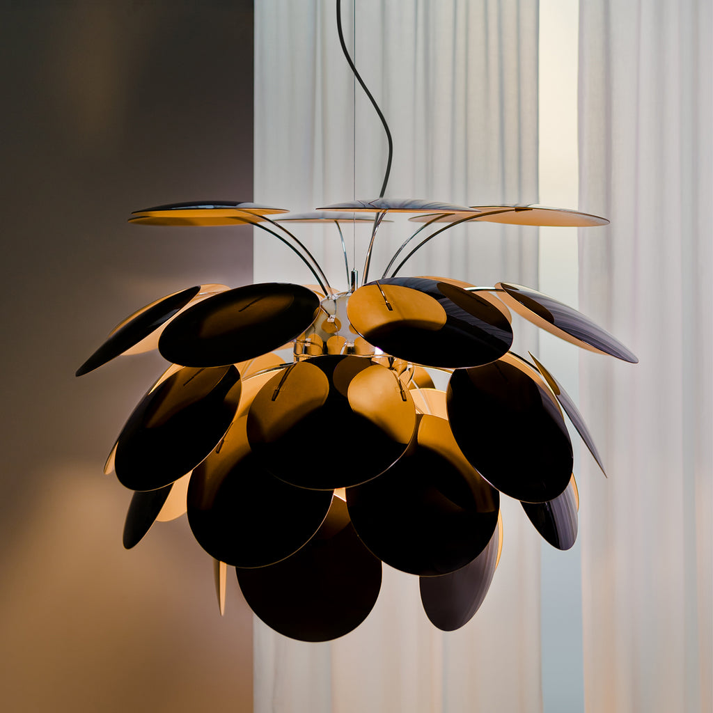 Exuberant even when turned off, the richness of the light issuing from the Discocó lamp provides direct downward illumination along with a dramatic play of lights and soft shadows.