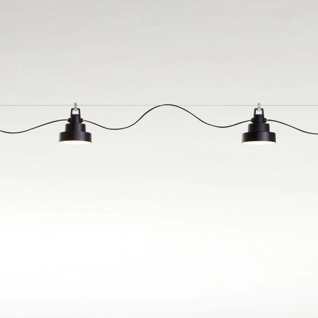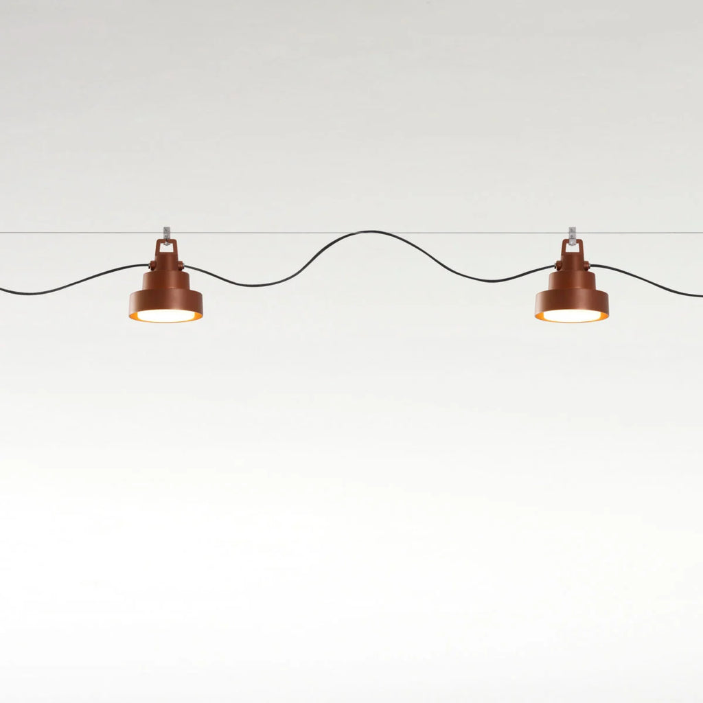 A design that combines simplicity and functionality and which in this new pendant version comes with a garland accessory allowing different lamps to be joined to a single point of light. Finally, a neoprene cable ensures waterproofing with no deterioration. The new Plaff-on! projects the light directly downwards.