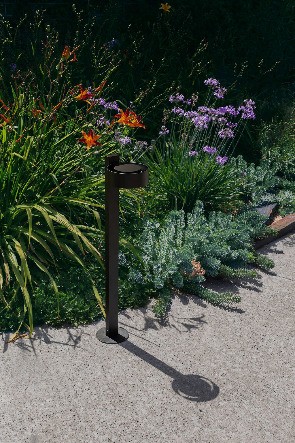 Expanding its reach into outdoor spaces, the Plaff-on! collection by Joan Gaspar is changing its approach to lighting, and now comes in a new bollard version to illuminate paths or areas of a garden. As in the indoor versions, the white blown glass diffuser seems to float, detached from the ring that envelops it, and its light filters down, creating a luminous halo around it. It exudes simplicity and utility.