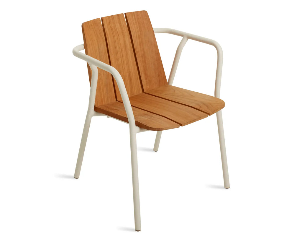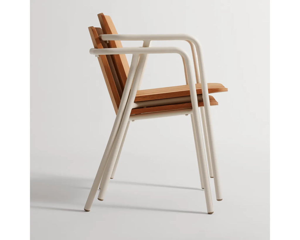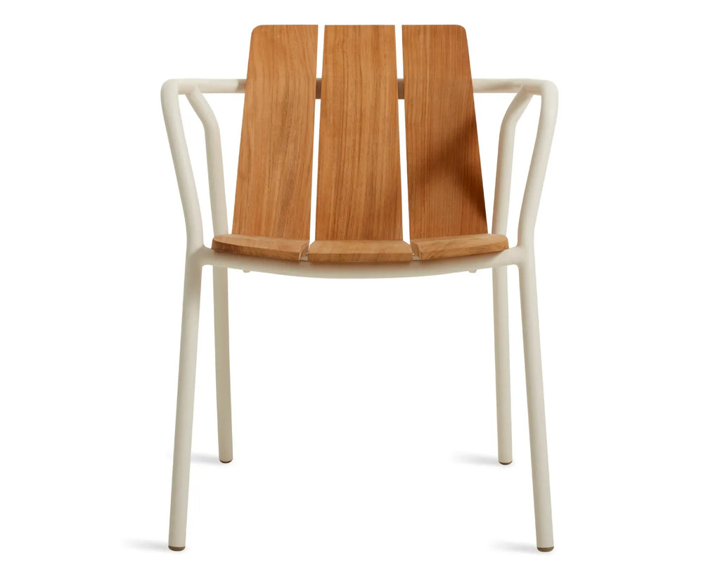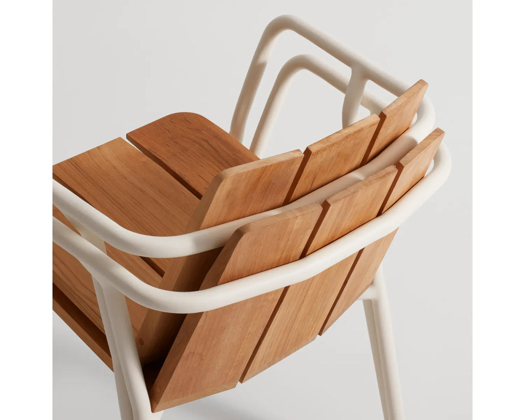 No cookies to disable here. Tapered FSC®-certified teak wood planks and powder-coated aluminum mind-meld to turn heads and appease backsides. Beveled surfaces soften the seat experience. If you're checking your email, you're doing it wrong. Stackable and suitable for indoors and out. Pair with the Offline Outdoor Chair Seat Pad for the seat retreat you never knew you needed.