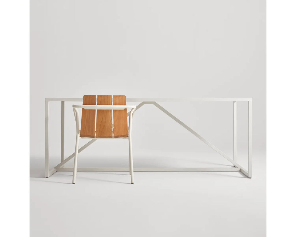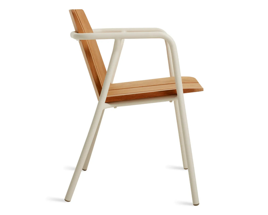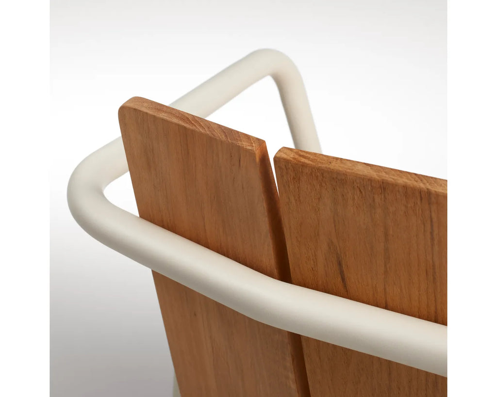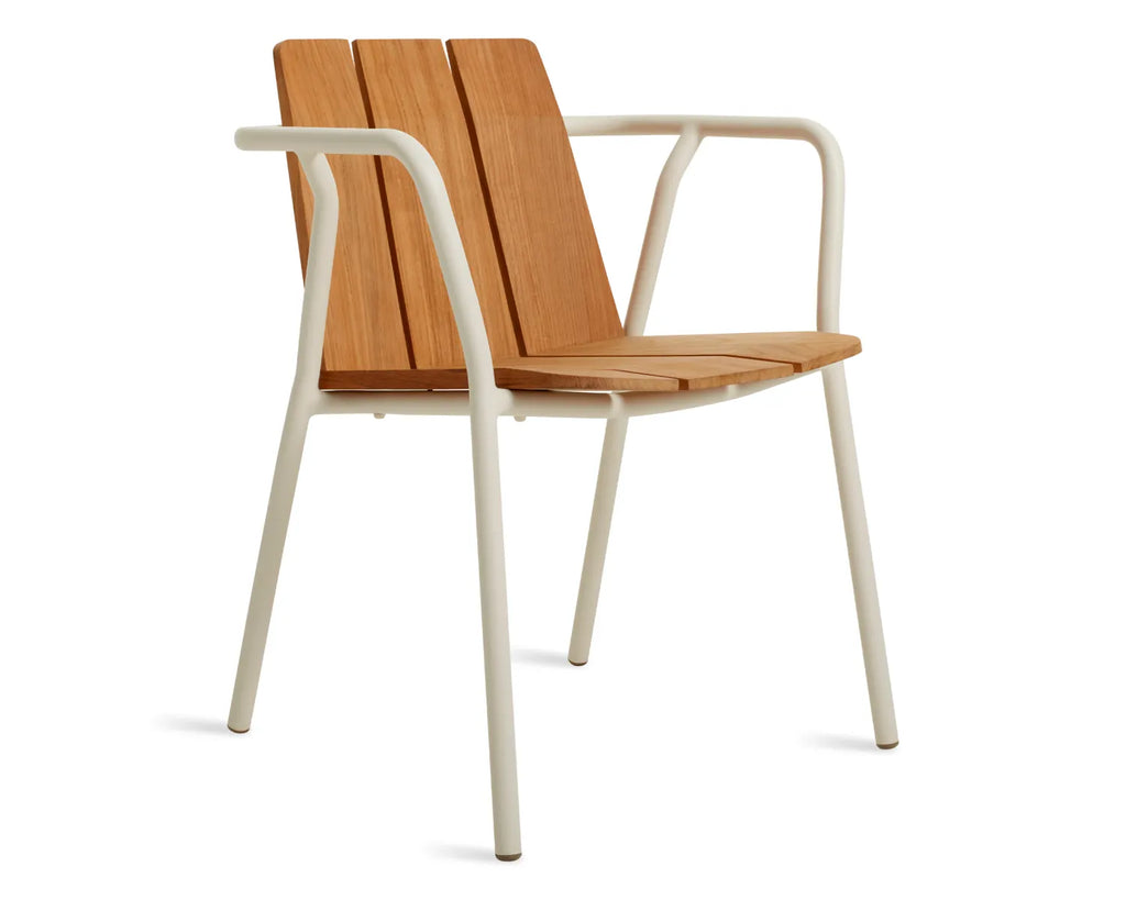 No cookies to disable here. Tapered FSC®-certified teak wood planks and powder-coated aluminum mind-meld to turn heads and appease backsides. Beveled surfaces soften the seat experience. If you're checking your email, you're doing it wrong. Stackable and suitable for indoors and out. Pair with the Offline Outdoor Chair Seat Pad for the seat retreat you never knew you needed.