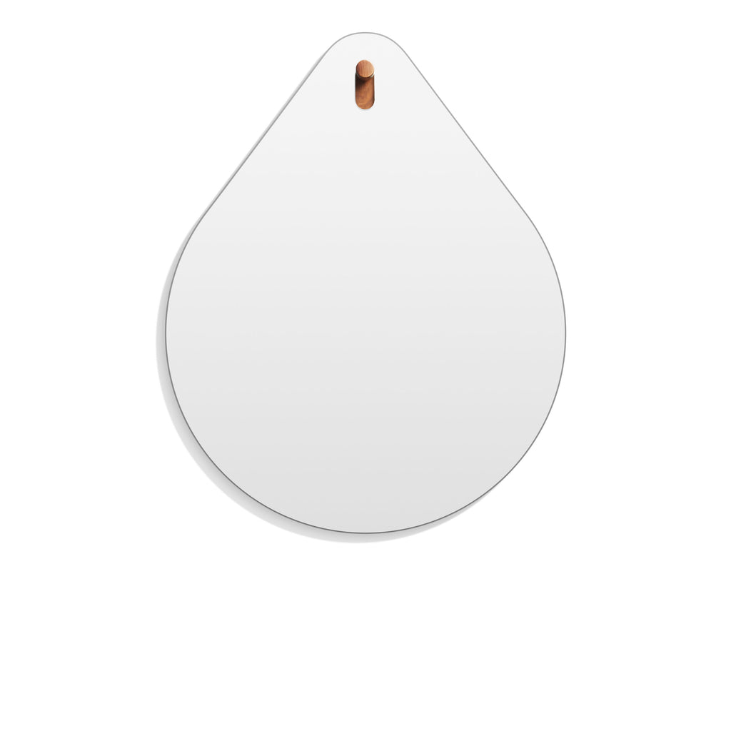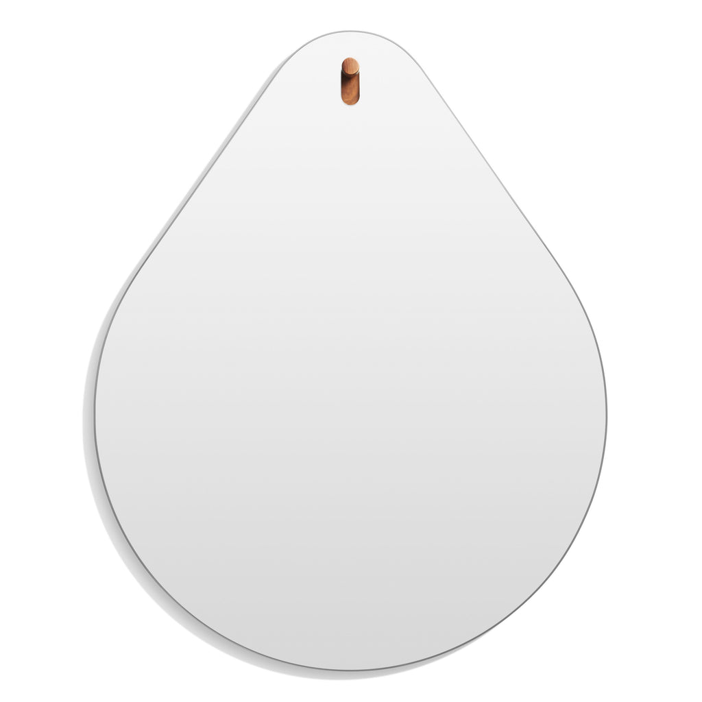 Hang 1 Drop Mirror in your entry. Hang 1 in your bathroom. Hang 1 in your bedroom. You get the idea. Smooth, radius-edged modern mirror mounts on a playful solid walnut peg. Available in eight shapes.