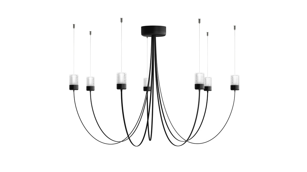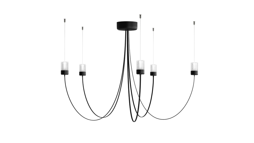 The Gravity Chandelier comes in two sizes, after the number of arms, Gravity Chandelier 5 and Gravity Chandelier 7.