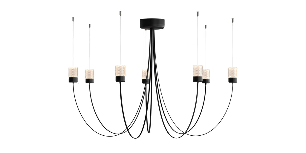 The Gravity Chandelier by Paul Cocksedge re-imagines the chandeliers of the past. Inspired by changing rigidity to elasticity. The Gravity Chandelier is the definition of a modern chandelier. At first glance, it doesn’t reveal its flexibility and cleverness; It takes a second look to unravel its mystery. With its flexible arms, you define the chandelier’s diameter and choose where the light travels, but the suspended elements create natural curves shaped by gravity.
