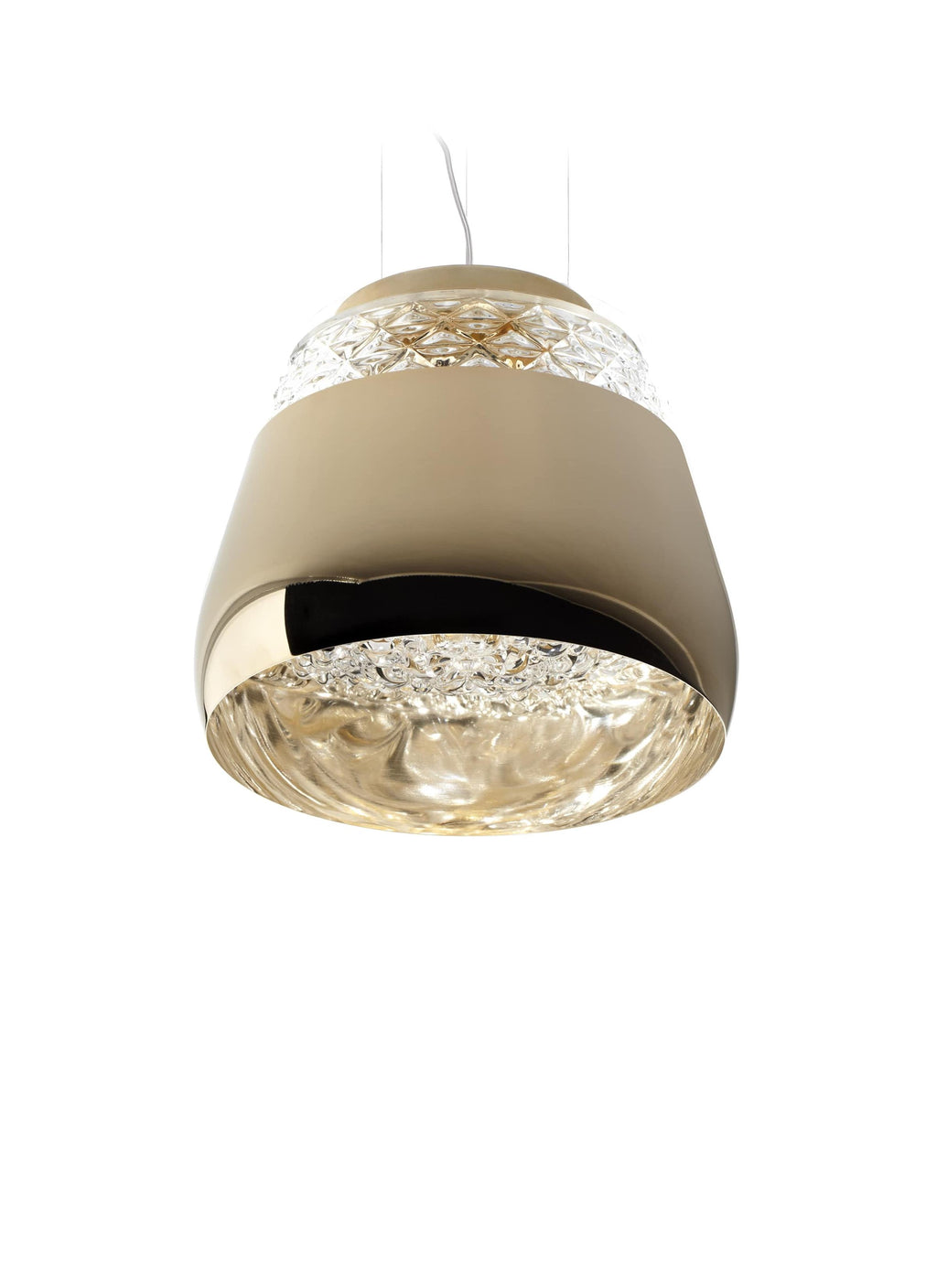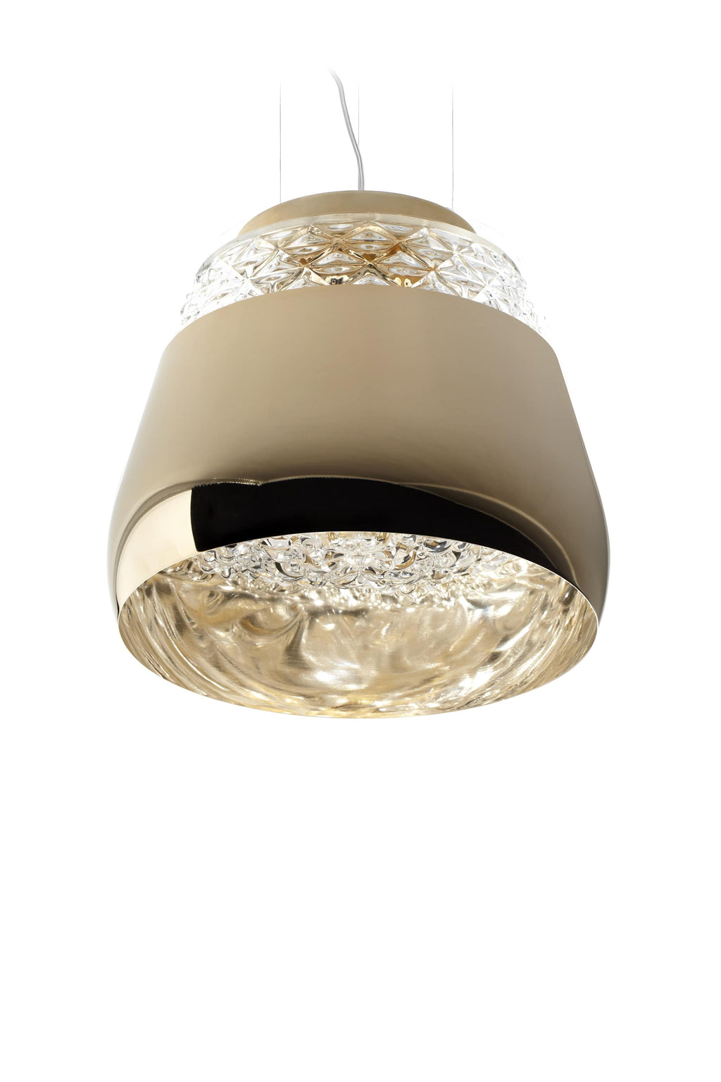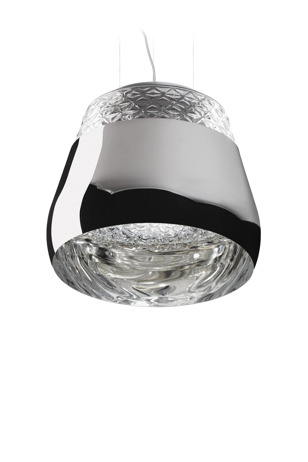 Crystal clear blown glass with metal shade.