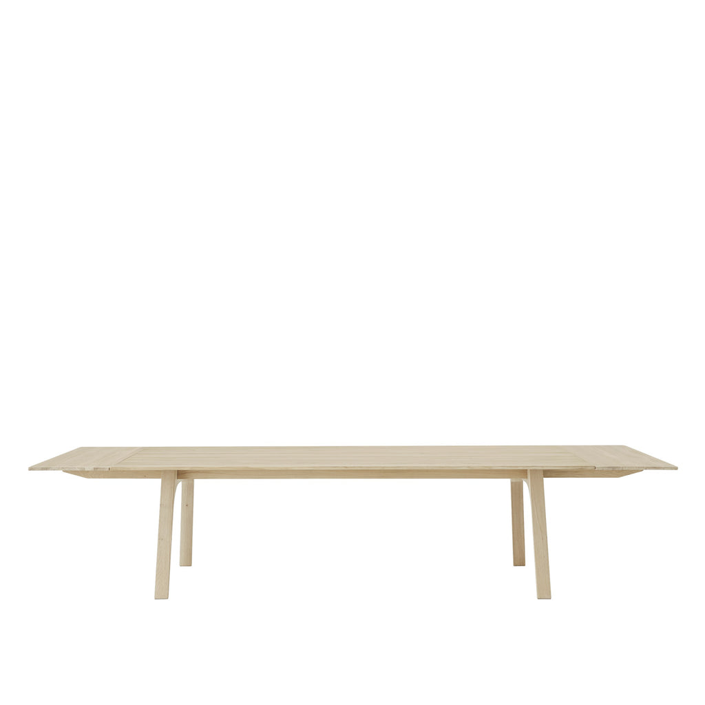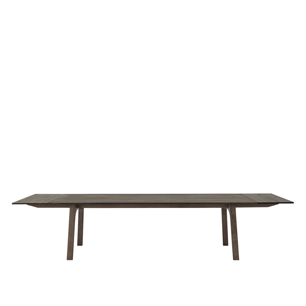 The Earnest Extendable Table brings new perspectives to the timeless Scandinavian wood table. The Earnest Extendable Table is EU Ecolabel Certified. By carrying the EU Ecolabel Certification, the product is guaranteed to have a reduced environmental impact throughout the total lifecycle of the product from raw material to disposal. Made from FSC™️-certified (FSC-C028824) wood, it features sculptural arched legs, a clear-cut profile, and a light expression tabletop. The table extends with manual apron pulls and a secure lock, all crafted in solid oak, seamlessly concealing its dual functionality. Available in two sizes, the smaller size comfortably fits 6 seats, expanding to 10, while the larger version accommodates 8 and extends to 12 seats — keeping the same shape once extended, with the extension leaves' wood grain going in a different direction than the table's, adding a unique touch. Pairs perfectly with all Muuto chairs.