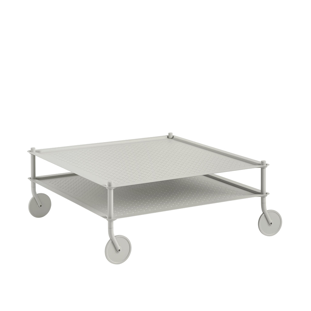 The Flow Coffee Table combines industrial elegance with practical design. Crafted from molded metal sheets, this table features a unique two-layer structure and perforations for a light, airy appearance. Equipped with durable rubber and steel wheels, it moves smoothly and quietly, and is suitable for both indoor and outdoor use.