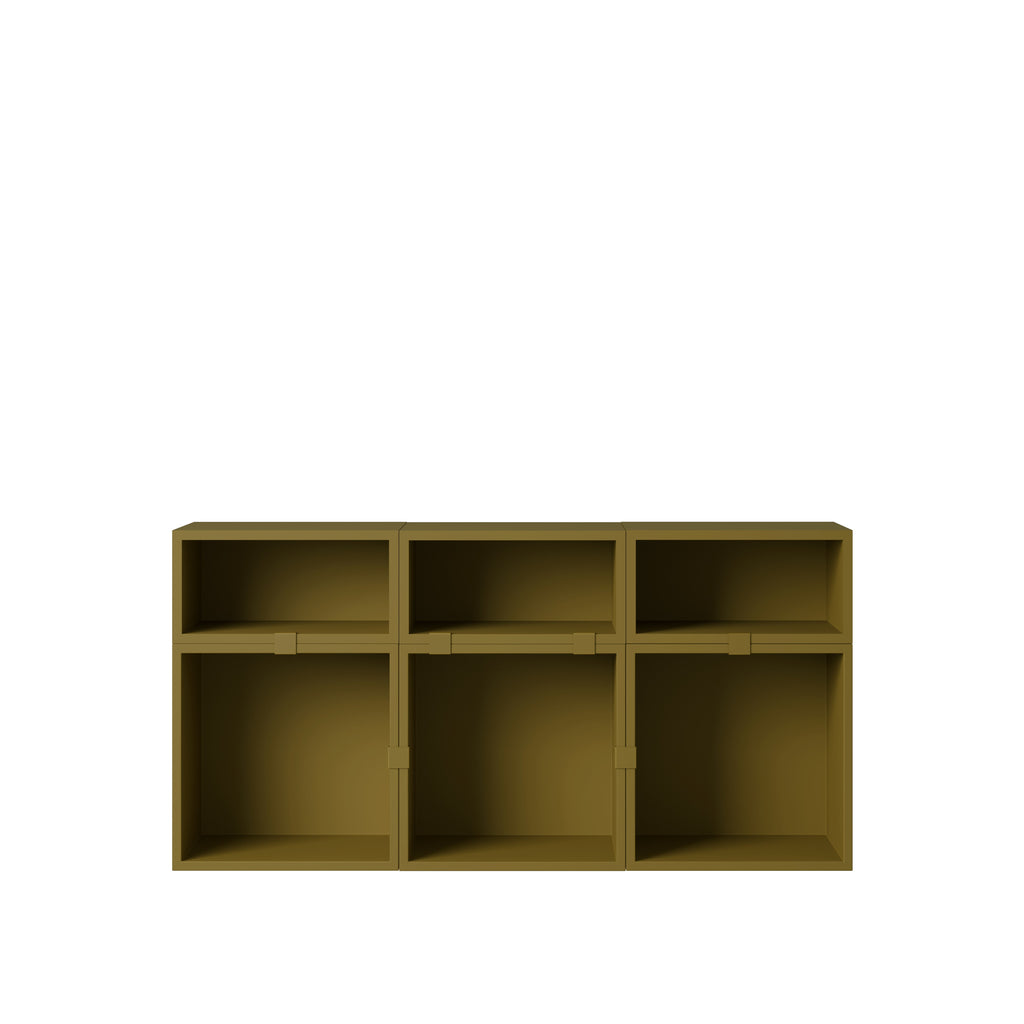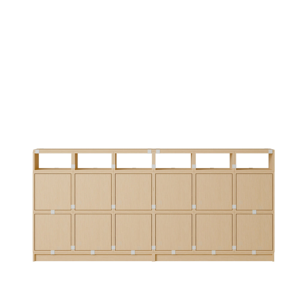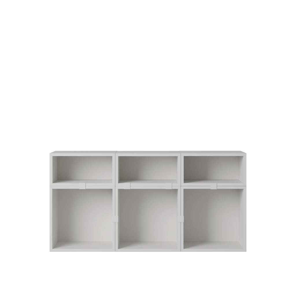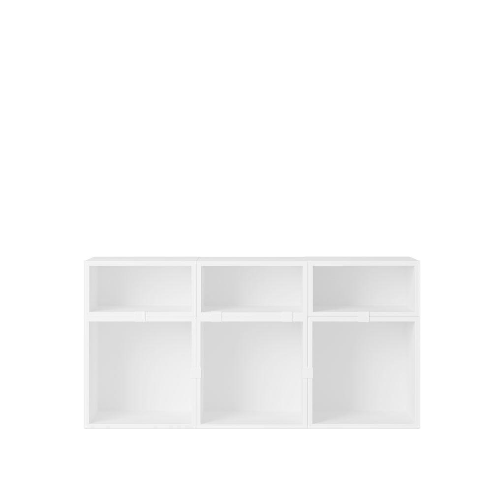 Being both versatile and functional, the Stacked Storage System can be arranged and rearranged for the exact aesthetic and functional needs of any space. Seen here is a selection of predesigned Sideboard configurations that bring modern storage to any home, workplace or hospitality setting. All modules with backboard can be mounted directly onto the wall.