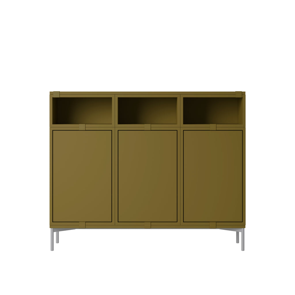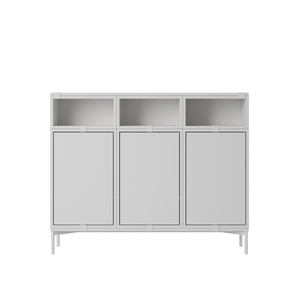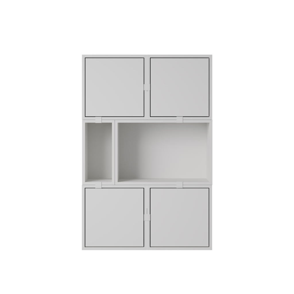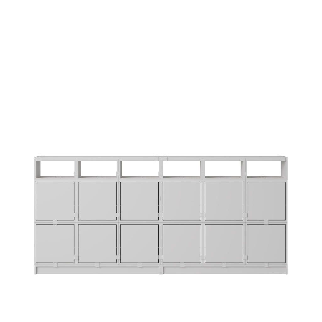 Being both versatile and functional, the Stacked Storage System can be arranged and rearranged for the exact aesthetic and functional needs of any space. Seen here is a selection of predesigned Sideboard configurations that bring modern storage to any home, workplace or hospitality setting. All modules with backboard can be mounted directly onto the wall.