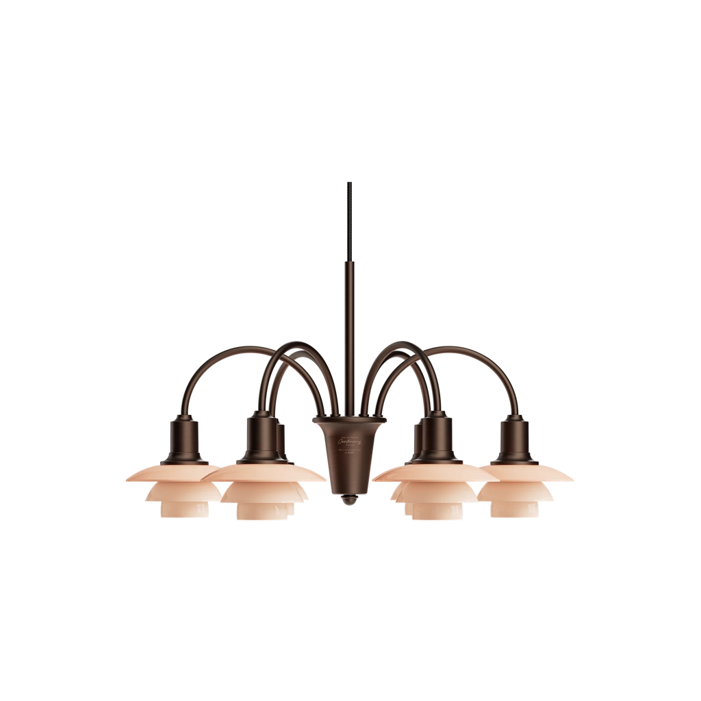Based on the iconic principle of the reflective System PH developed by Poul Henningsen in 1926, the PH 1/1 Chandelier Centenary Edition, originally known as the Bombardement Chandelier, was originally part of the Louis Poulsen catalogue from 1933 until the mid-1960s.