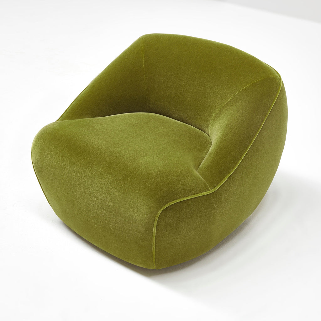 Soft welcoming curves with a clean silhouette. The Rowan Lounge Collection embodies the organic-modern aesthetic we have come to recognize from Yabu Pushelberg. Its fluid and continuous smooth lines highlight the informal elegance of the new Rowan Lounge Collection. The Rowan Lounge chair has a surprisingly small footprint, but with a comfortable, spacious seat. Choose from a fixed base or a discrete circular metal base that rotates smoothly through 360° that allows you to move effortlessly from one conversation to the next.