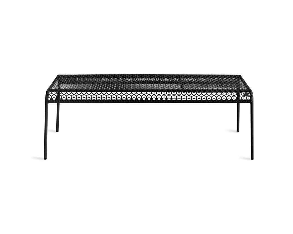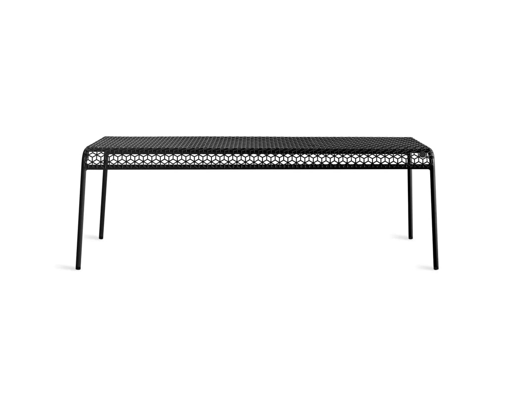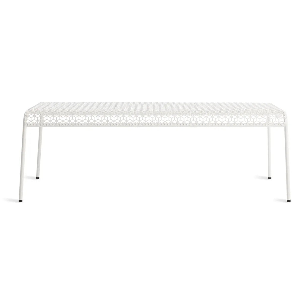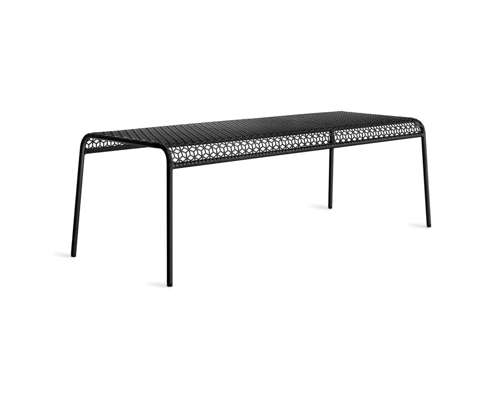 Sun's out, fun's out. Punched metal creates a bold graphic pattern that invites looks and sits. A simple, stackable tubular frame keeps the form crisp and the vibe easy breezy. Works its magic indoors or out.