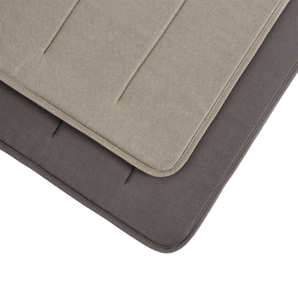 Upholstered foam with black, anti-slip backing. Upholstered in UV protected polyester textile.