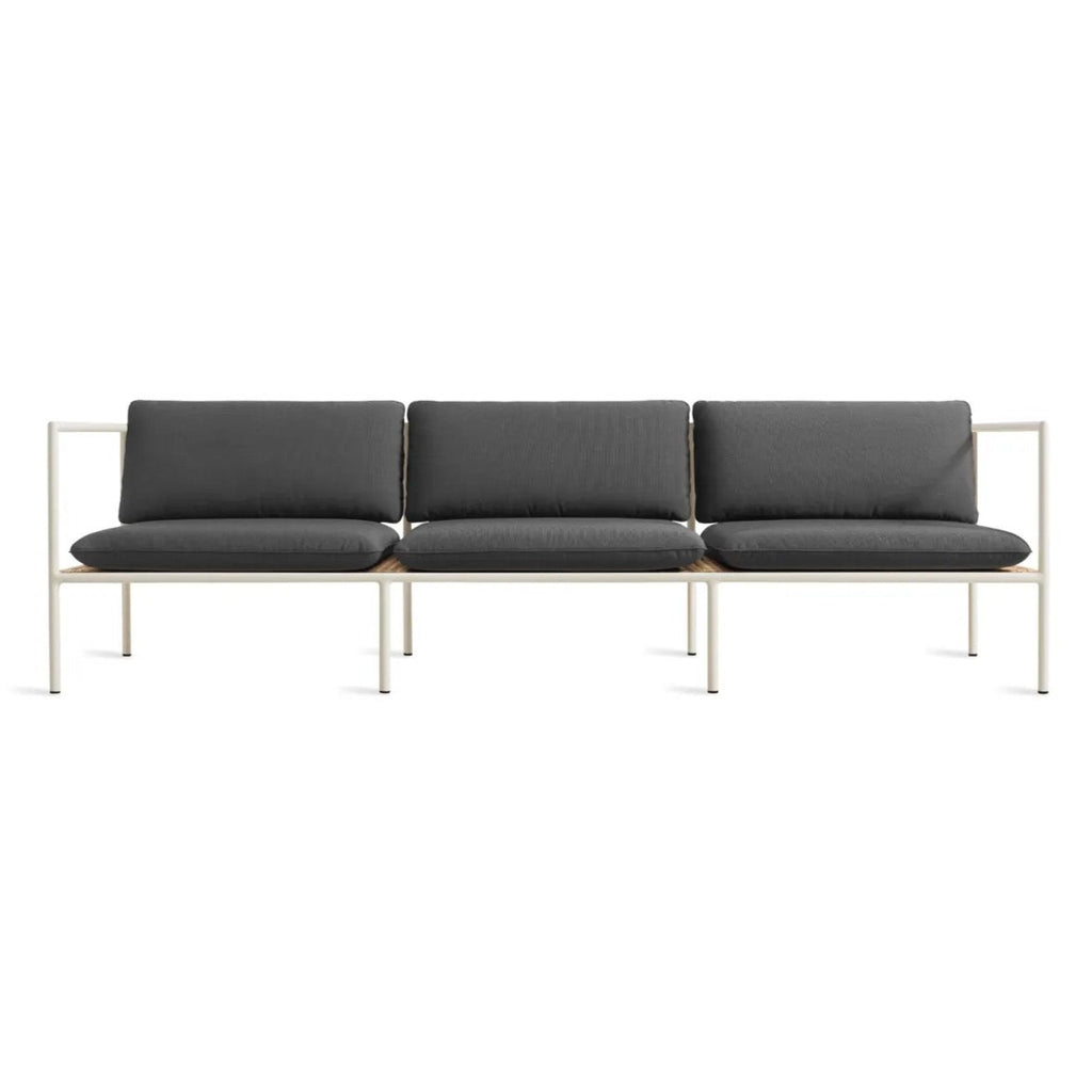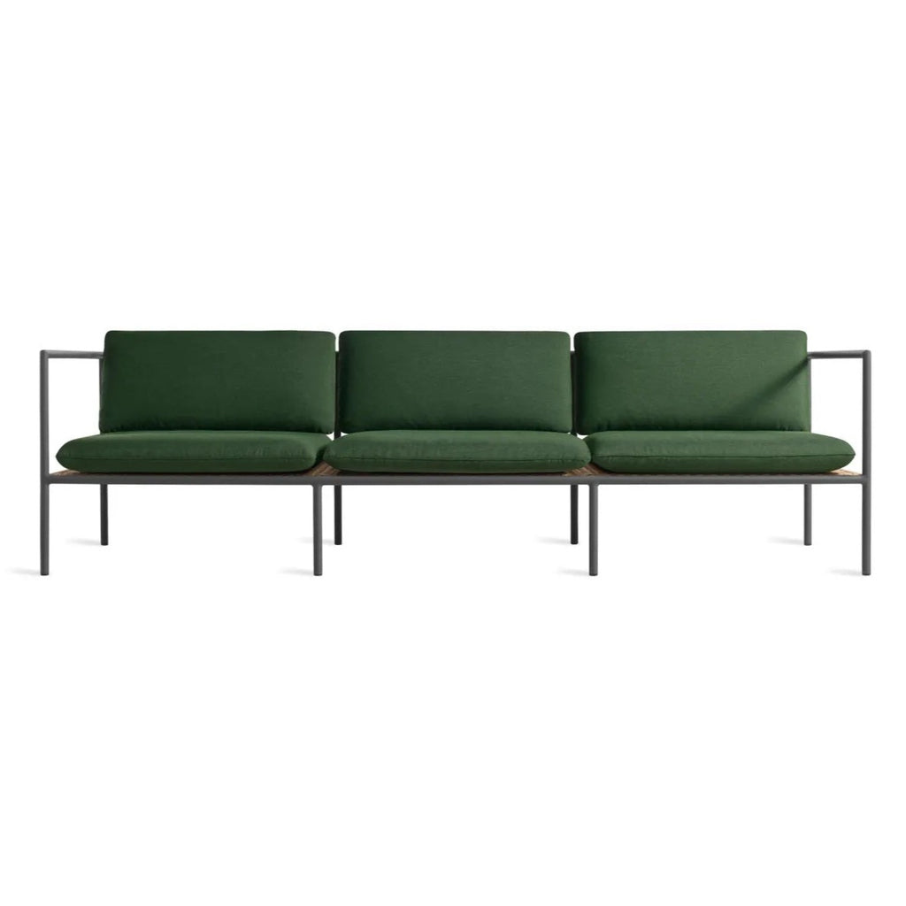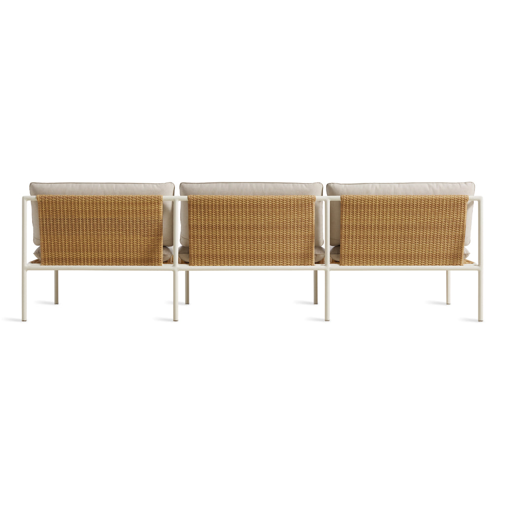All-weather rattan adds hand-woven texture to an architectural tubular aluminum frame. Designed to have great vistas from all angles, Dog Days is what happens when a minimalist goes on vacation and gets in touch their inner hippy. Seat and back feature ravioli style cushions upholstered in high-performance, mildew and fade resistant Sunbrella™ fabric.