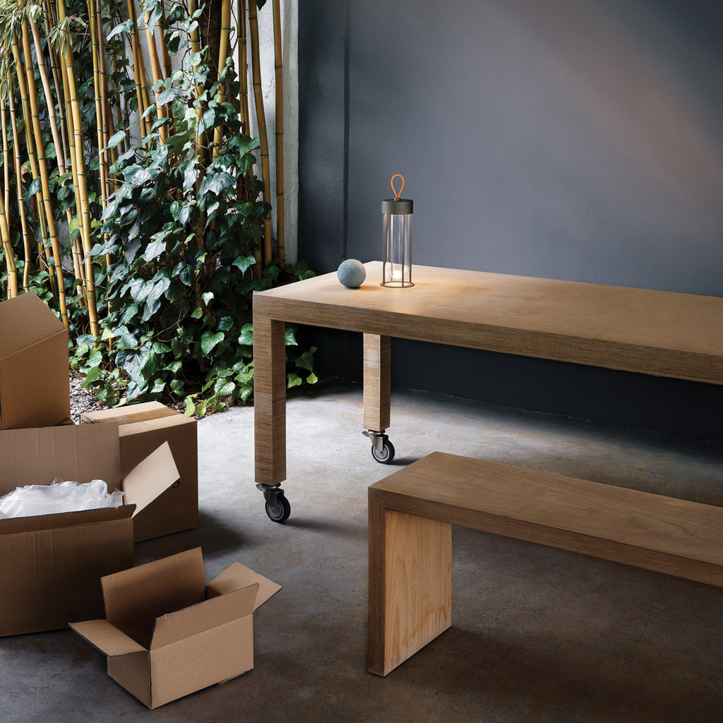 An elegant outdoor lighting collection designed by Philippe Starck, In Vitro (translates to inside glass) modernizes the classic lantern into a contemporary structure. The collection of glowing glass lanterns blends craftsmanship and technology in a singular design, concealing the LED light source at the top to appear magically lit. Its slim glass dome emanates a warm, atmospheric glow using EDGE LED technology hidden by an opalescent diffuser, protected by an aluminum shield.