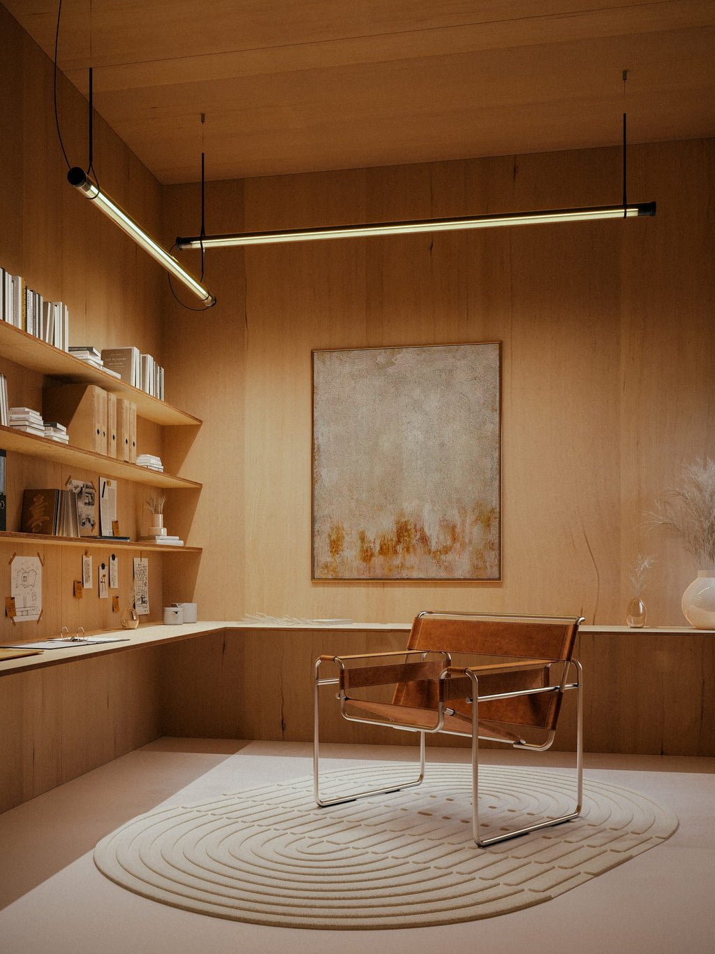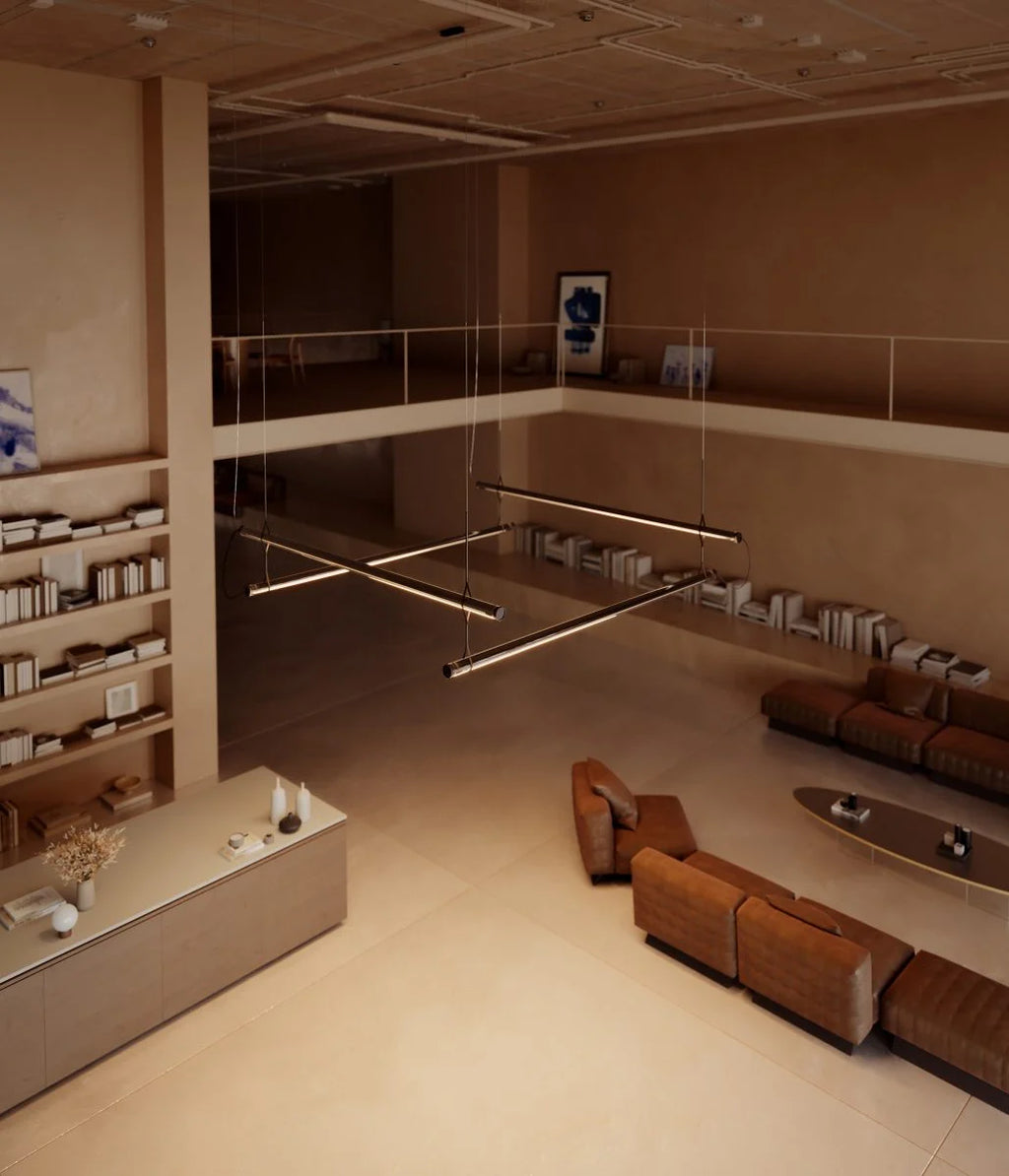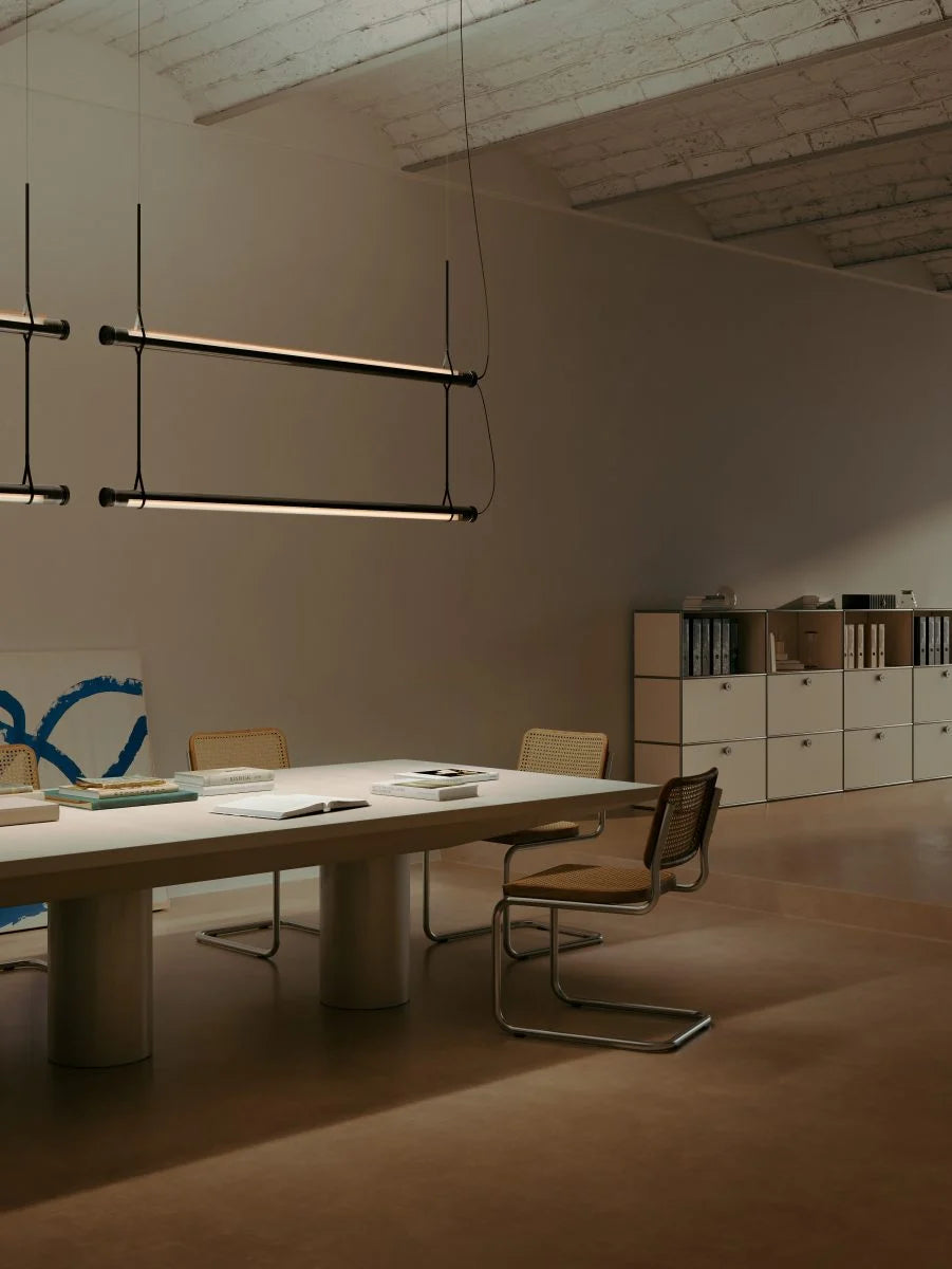 Drawing thin beams of light in a space with each one of them pointing in any direction. This is why we have created Fris, a multi-purpose lighting system, available in a wall/ceiling or pendant version, which allows you to combine several units in different sizes and positions, each one aiming its own beam of light.