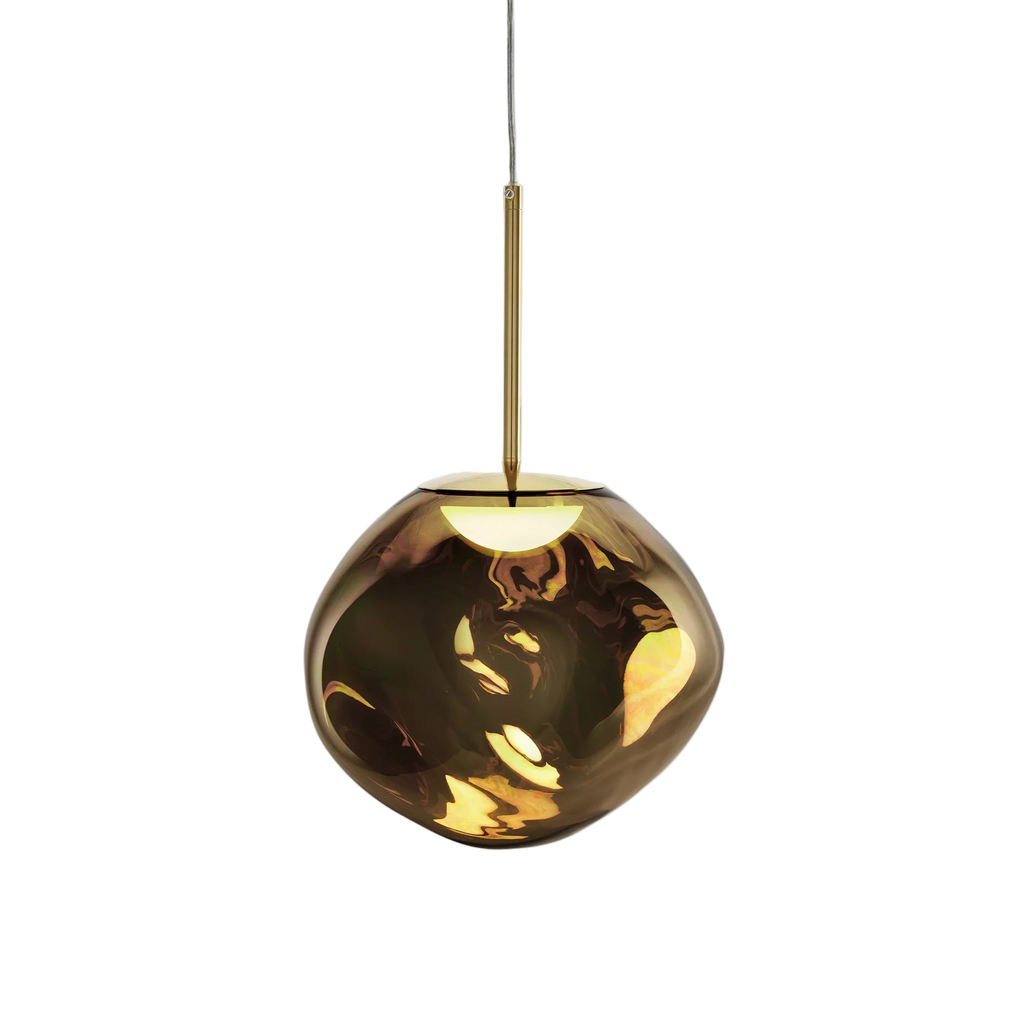 Melt is a beautifully distorted light that creates a mesmerizing melting hot blown glass effect. Its surface is reminiscent of the interior of a melting glacier or images of deep space. When off, the pendant appears opaque but when the light is turned on, the fixture becomes translucent. In 2019, the Melt family expanded with a custom-made Tom Dixon LED ring integrated into the fitting. The new LED version includes a 6W LED ring which is expected to last 10 years.