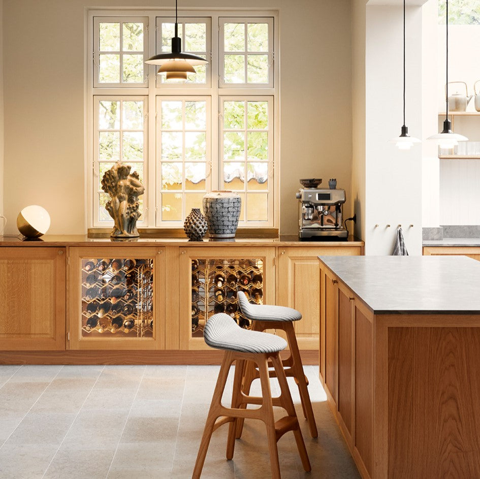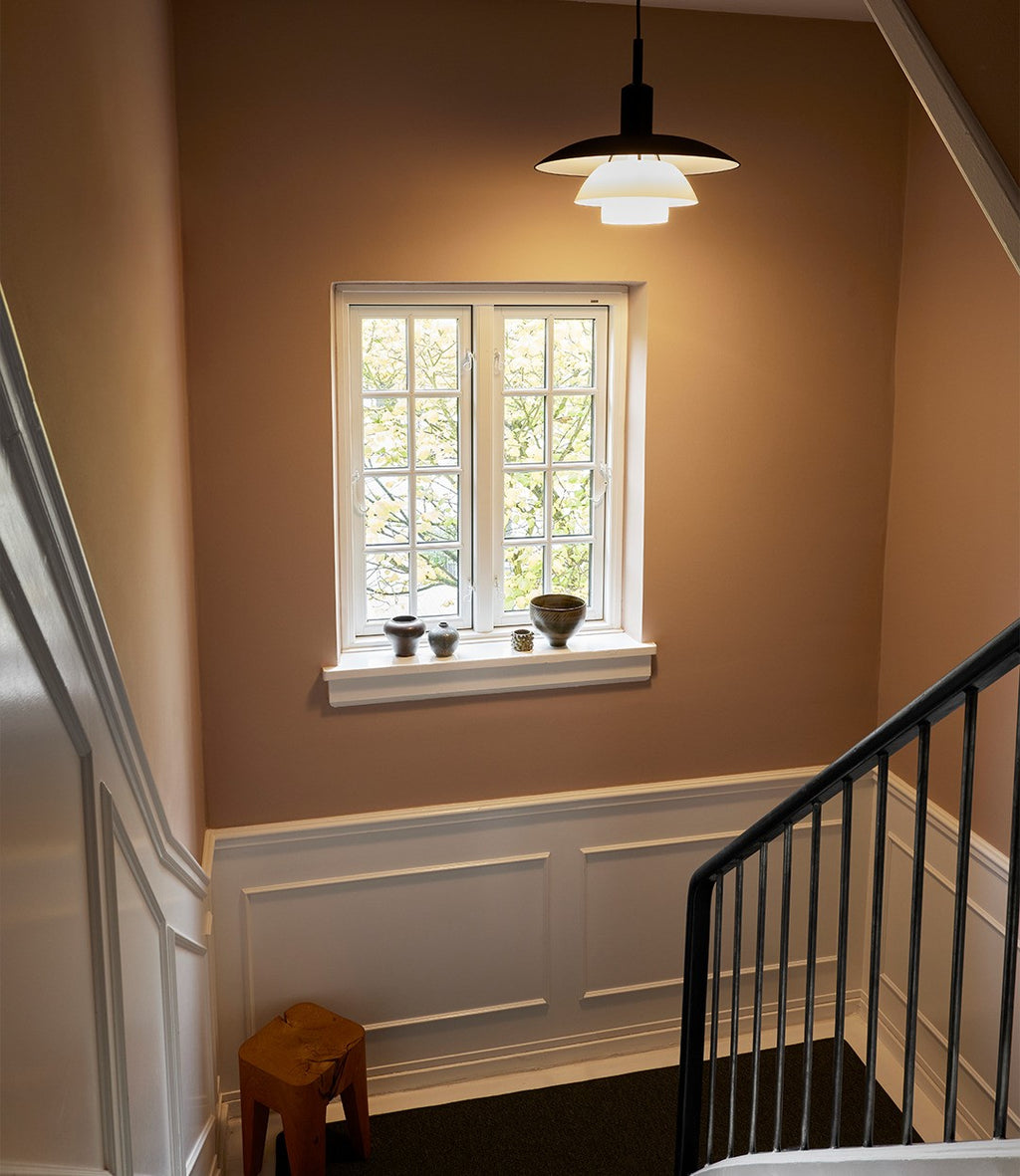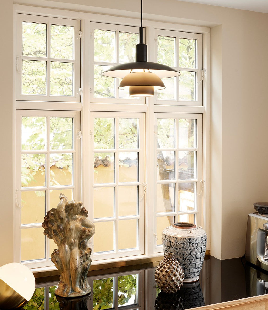 The fixture emits a comfortable, diffused, glare-free light that is characteristic of Poul Henningsen's reflective three-shade-system. The fixture is available with white opal glass or soft-touch black-painted metal with a white interior. The translucent shades in triple-layered, hand-blown opal glass create a warm glow around the pendant, whereas the metal shades with their white-painted interiors reflect a fine and primarily downwardly directed light. An optional translucent white diffuser (included) is easy to insert for an even softer light distribution.
