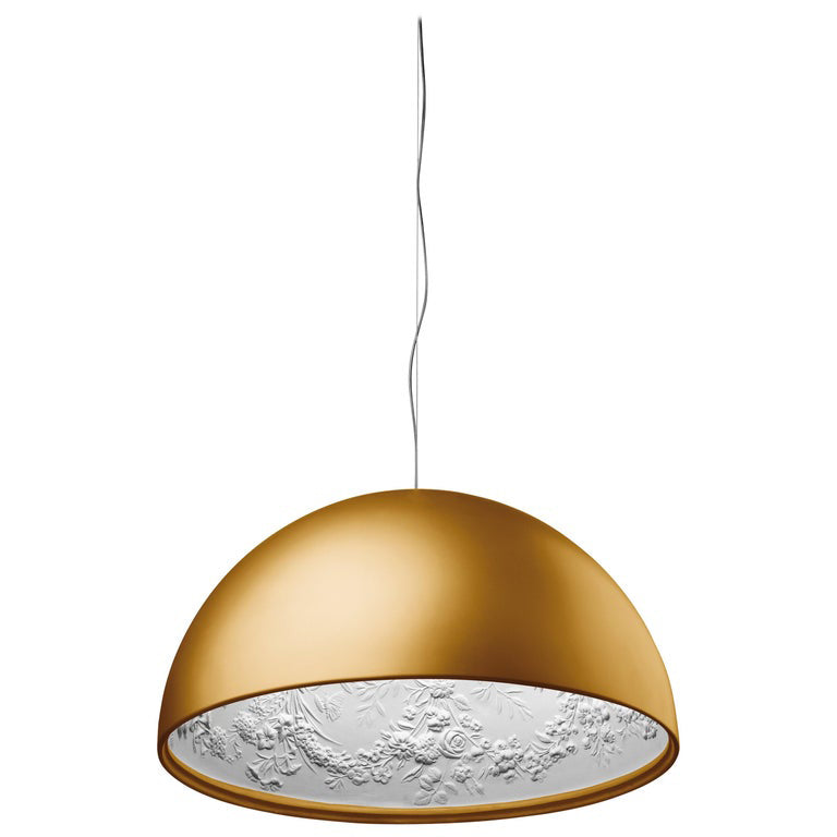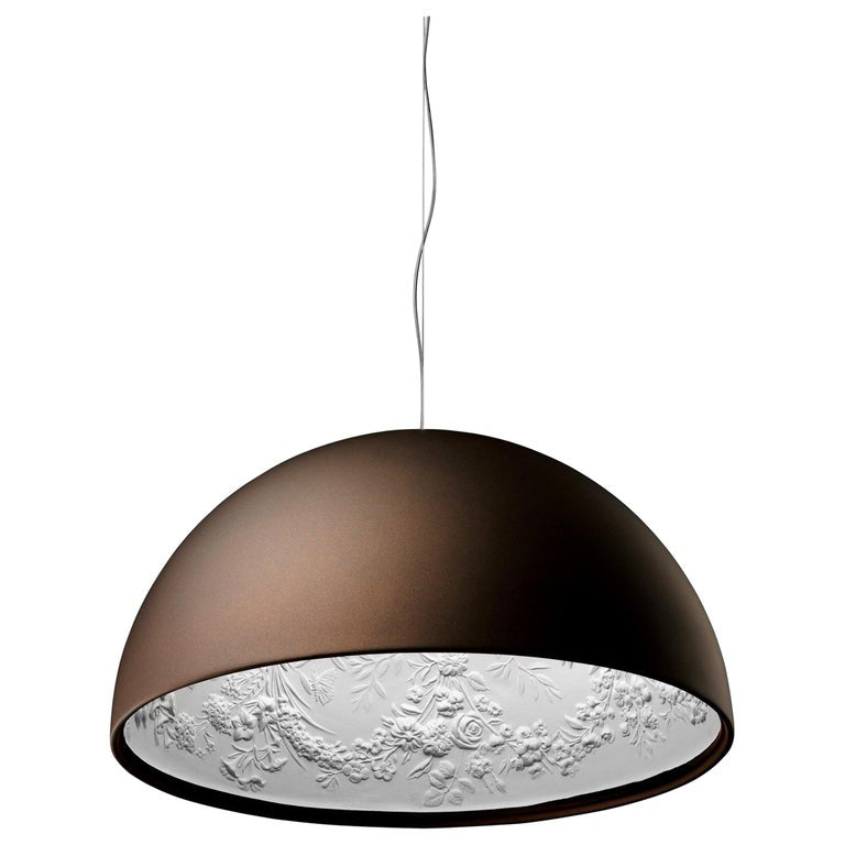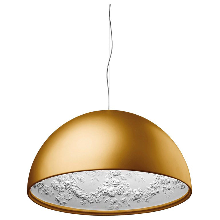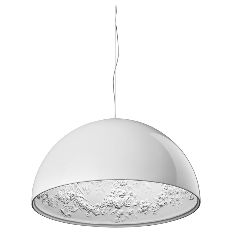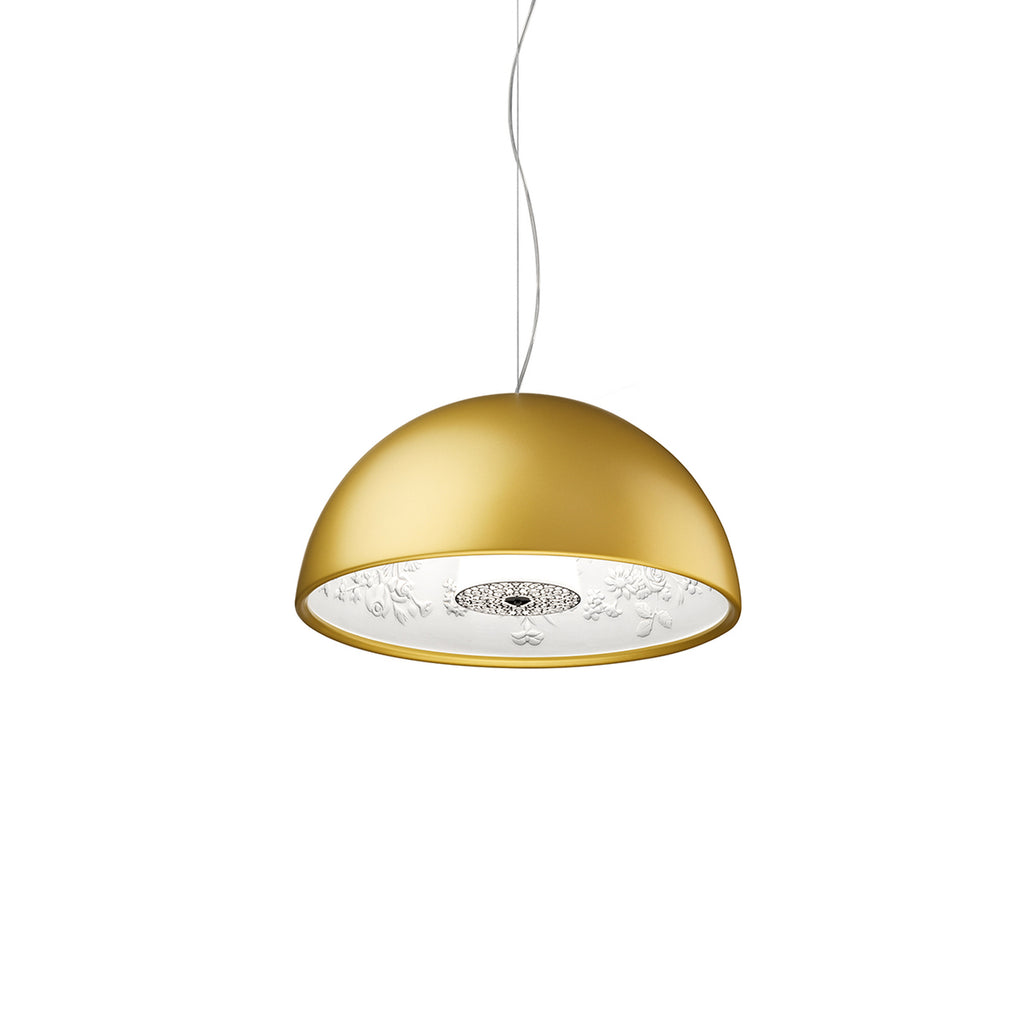 Imagine a stunning display blooming above you: Created by Marcel Wanders, the Skygarden S is just that. A gracefully hanging hemisphere, the pendant lamp makes a powerful impression with its sheer size. However, it is the inner diffuser in white painted cast plaster that steals the show. Standing beneath it, you will see the intricate design that gives this piece its name.