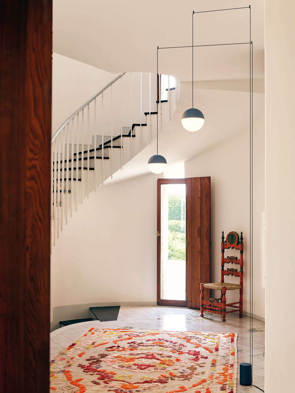 Inspiration behind the design: "Every time I take the train, I sit by the window and watch the series of perfectly parallel strings connecting the pylons, as we move at high speed,” explains designer Michael Anastassiades. “I love the way they divide the landscape and how spheres are occasionally beaded through the wires at random intervals. I also love how, in Mediterranean cultures, strings of lights are stretched between posts to mark an outdoor space for an evening party in a village square. And finally, I love how human ingenuity works around problems created by everyday things in the house (like switches and power points) that others have chosen to position where we don’t want them."