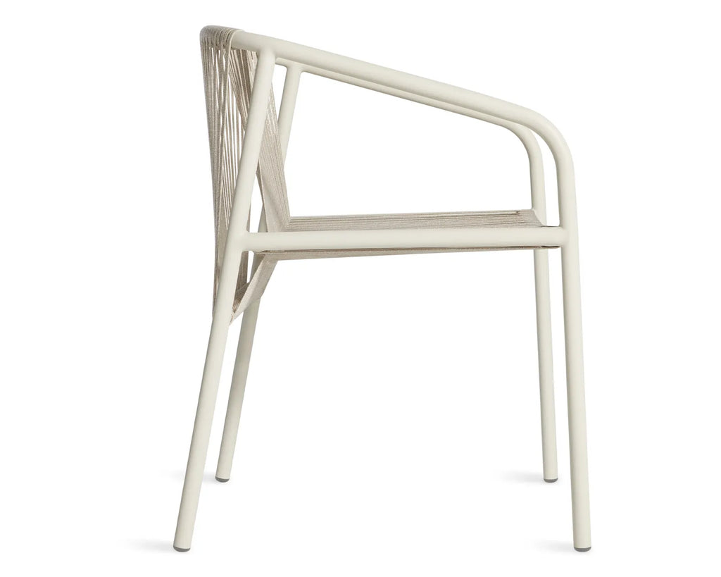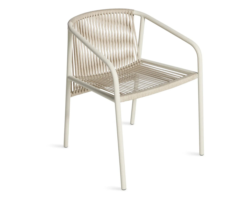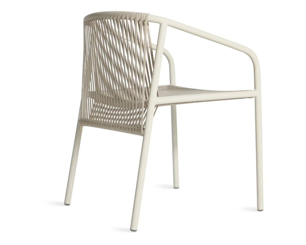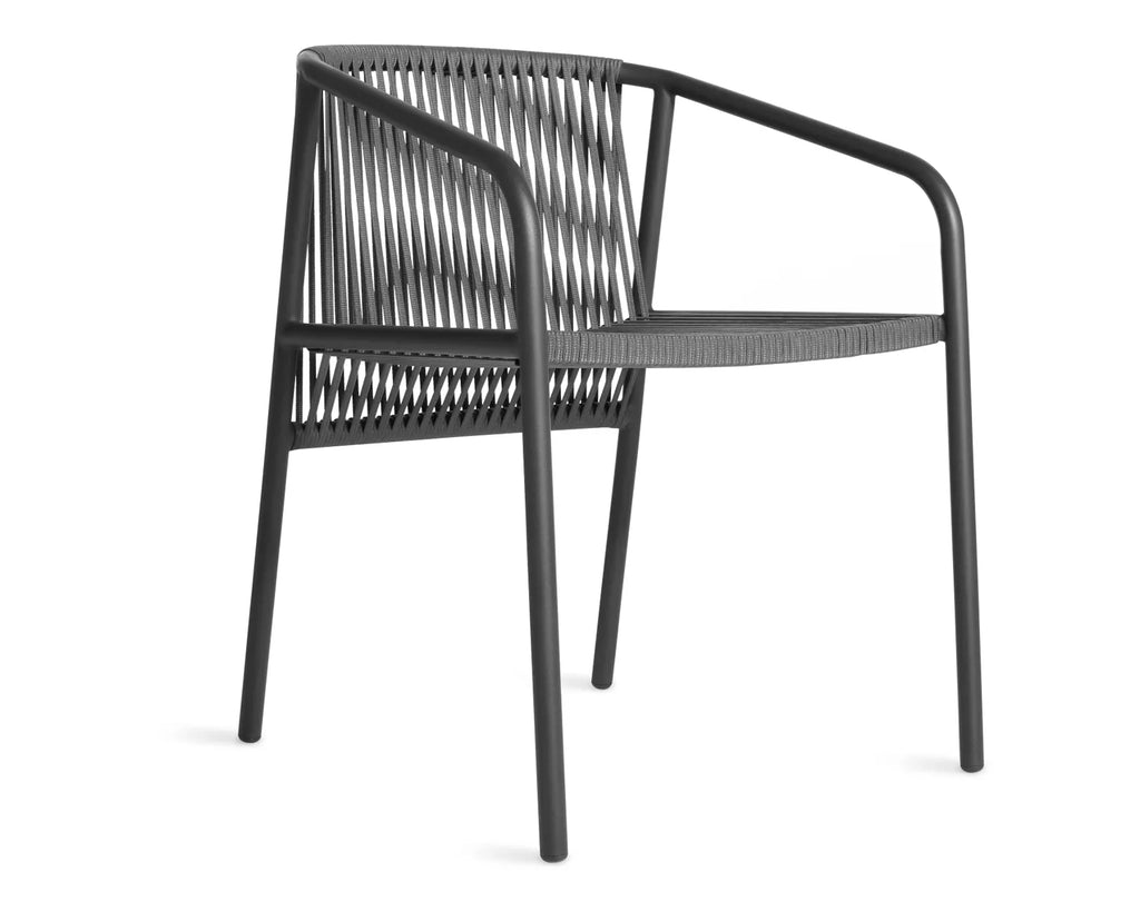 All-weather rope is woven round and round a light powder-coated steel frame to create a double-take of a graphic pattern and hammock seating at the dinner table. Best enjoyed with a side of sunshine and a Negroni. Also available in Lounge Chair.