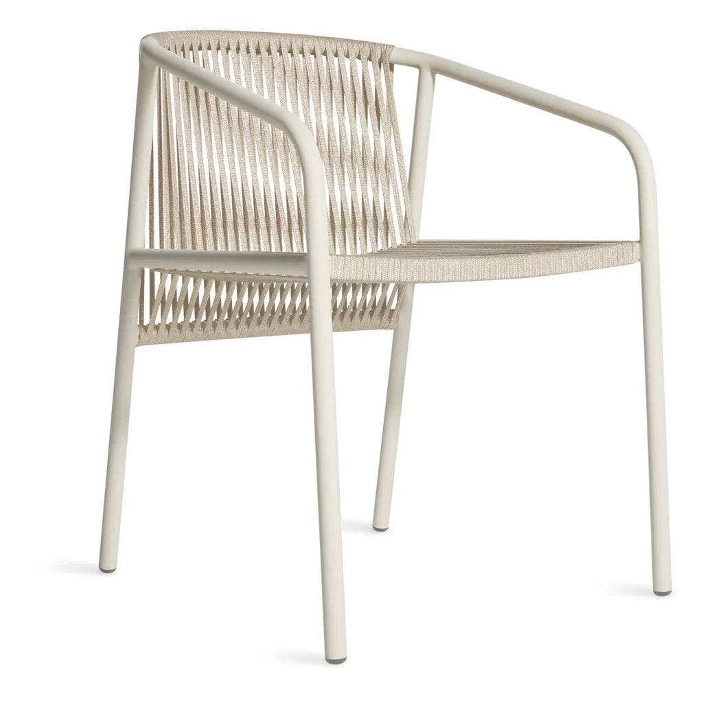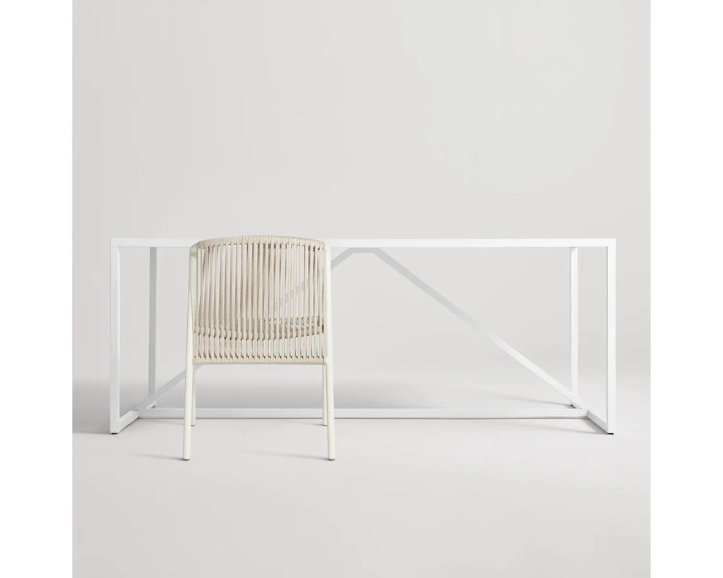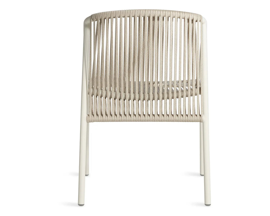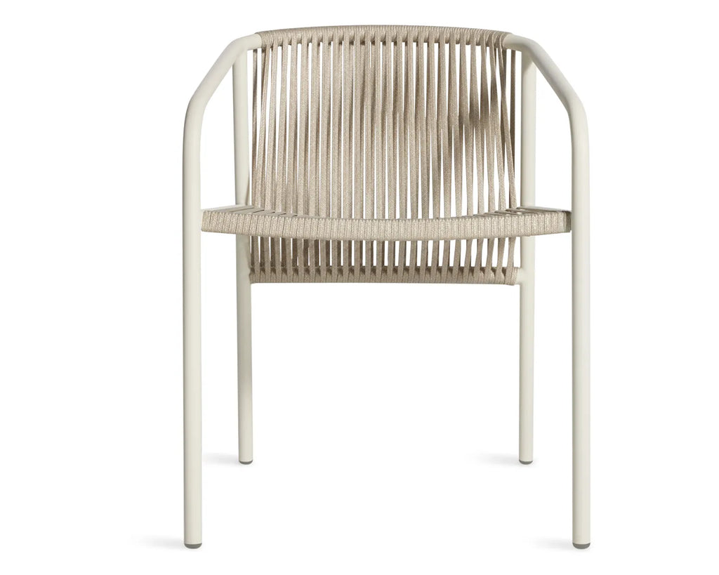 All-weather rope is woven round and round a light powder-coated steel frame to create a double-take of a graphic pattern and hammock seating at the dinner table. Best enjoyed with a side of sunshine and a Negroni. Also available in Lounge Chair.