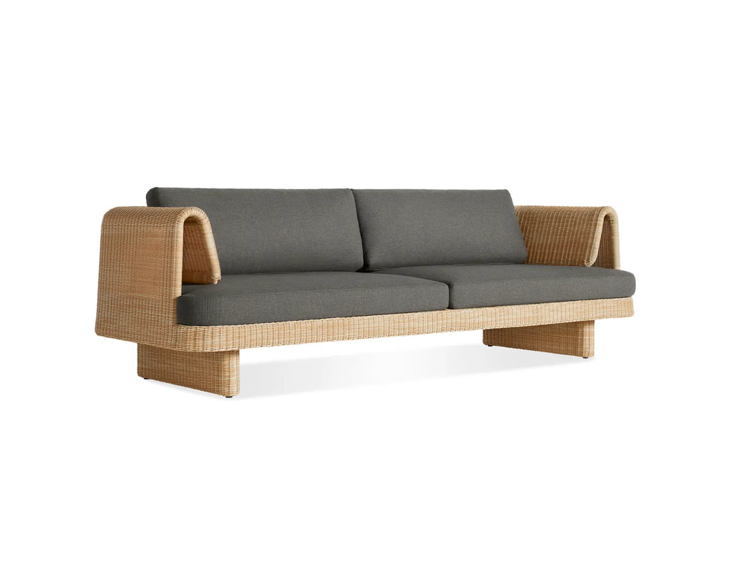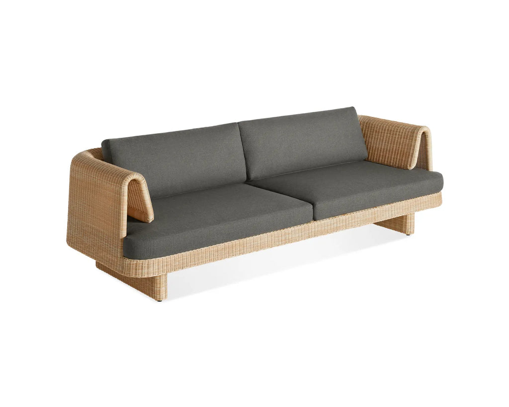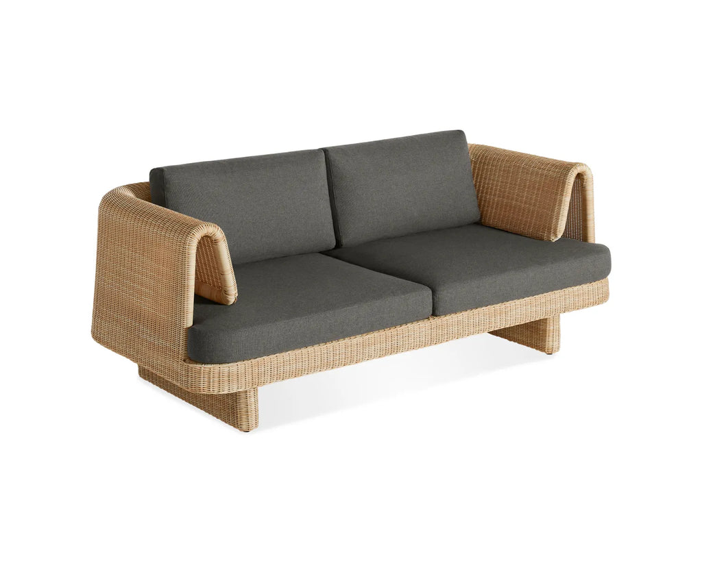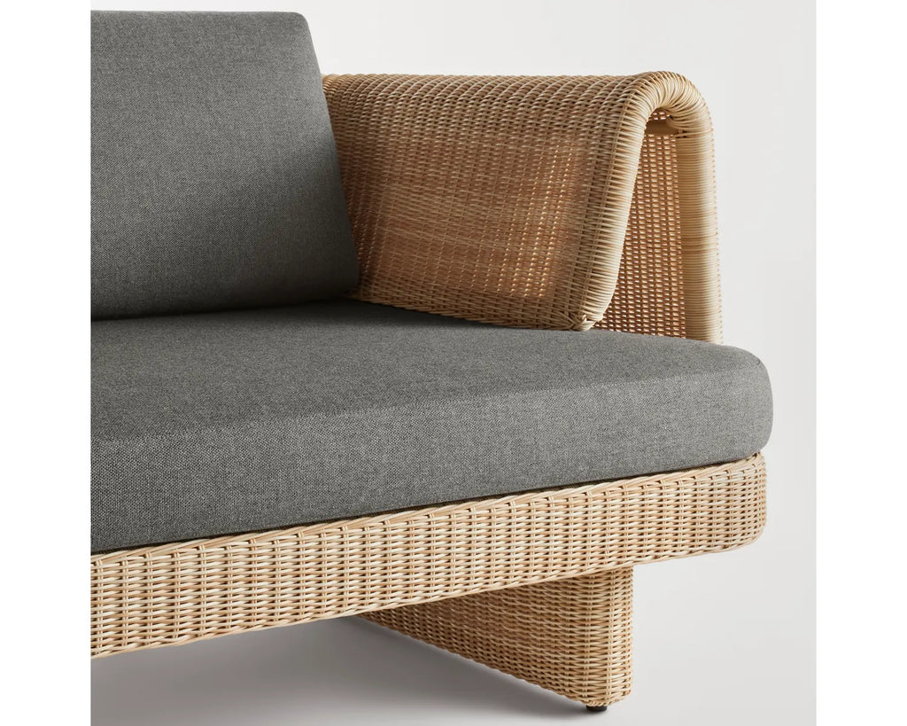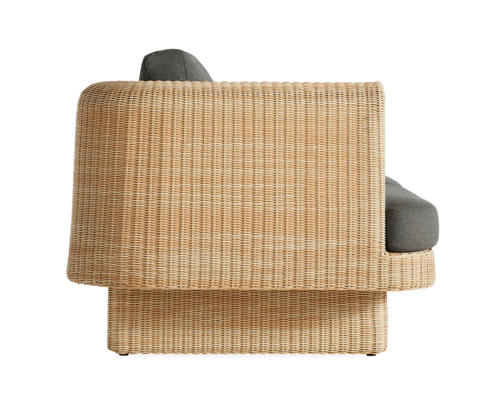 Curvy, comfy, convivial. Loophole sets the stage for long days lounging or heads tossed back late into the night. All-weather rattan wraps around a low-profile frame for a look that’s modern, yet classic. Cushions made with high-performance Sunbrella® fabric that’s both mildew and fade-resistant add yet another layer of ease. Pairs well with the Loophole Outdoor Lounge Chair.