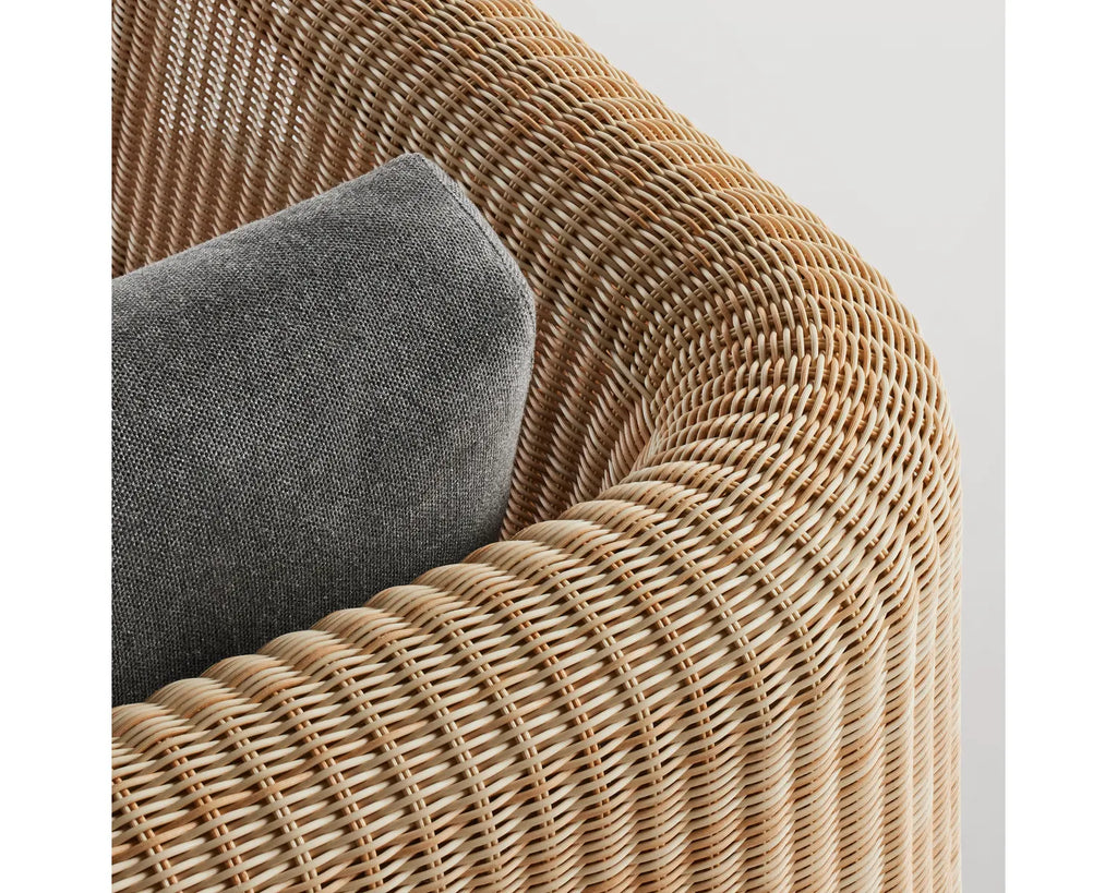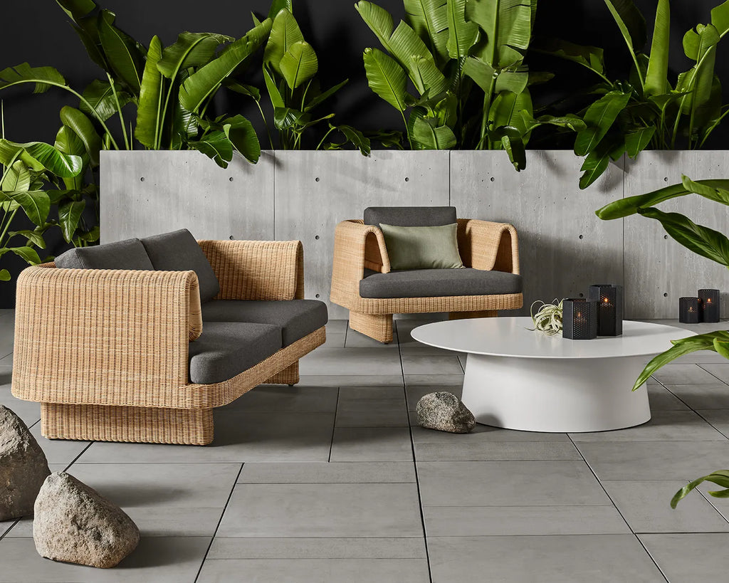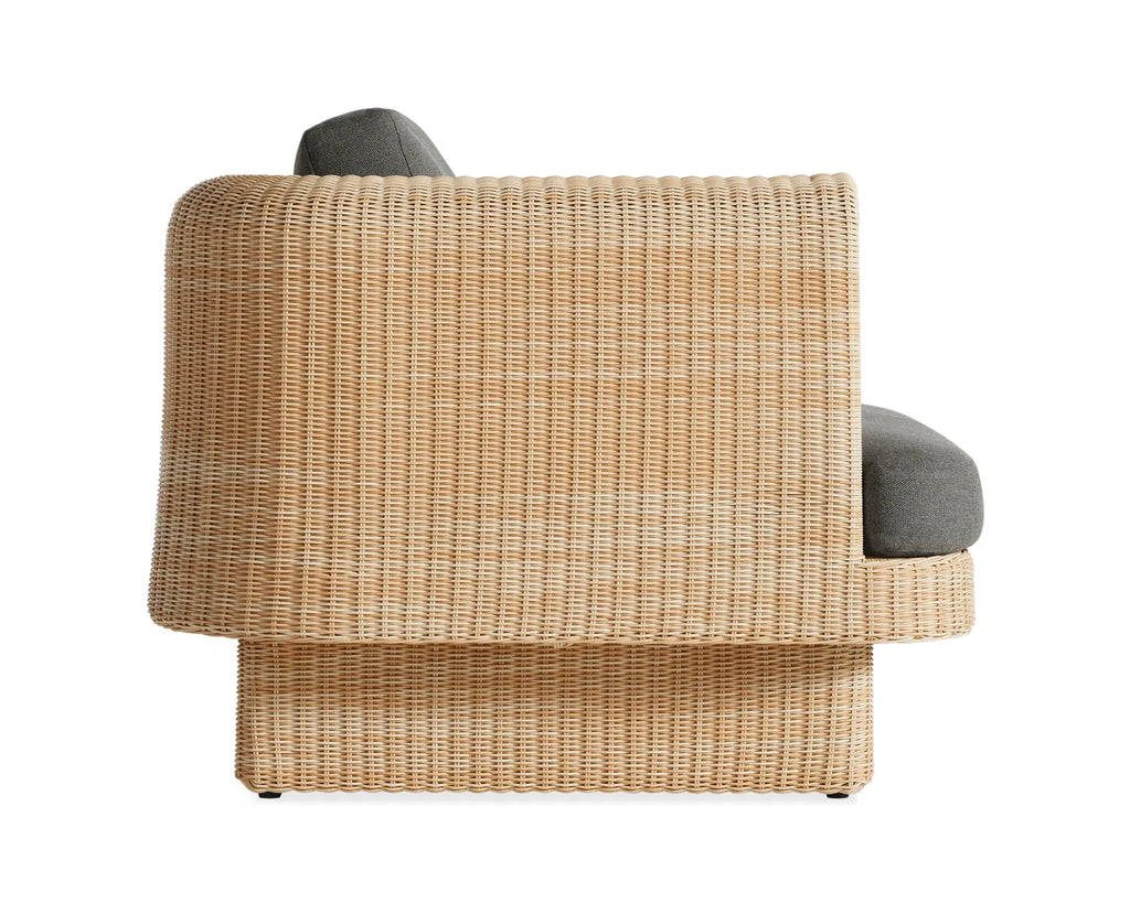 Curvy, comfy, convivial. Loophole sets the stage for long days lounging or heads tossed back late into the night. All-weather rattan wraps around a low-profile frame for a look that’s modern, yet classic. Cushions made with high-performance Sunbrella® fabric that’s both mildew and fade-resistant add yet another layer of ease.