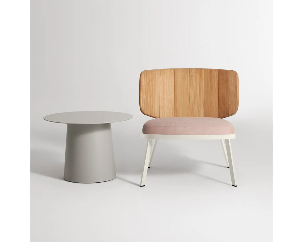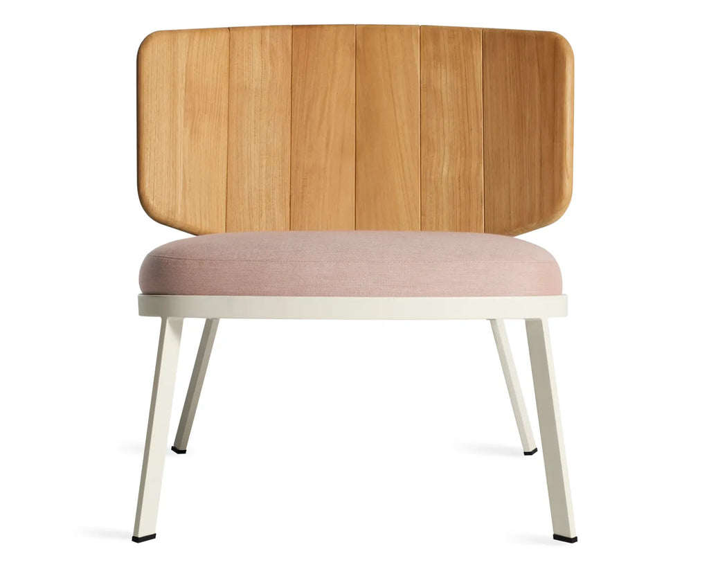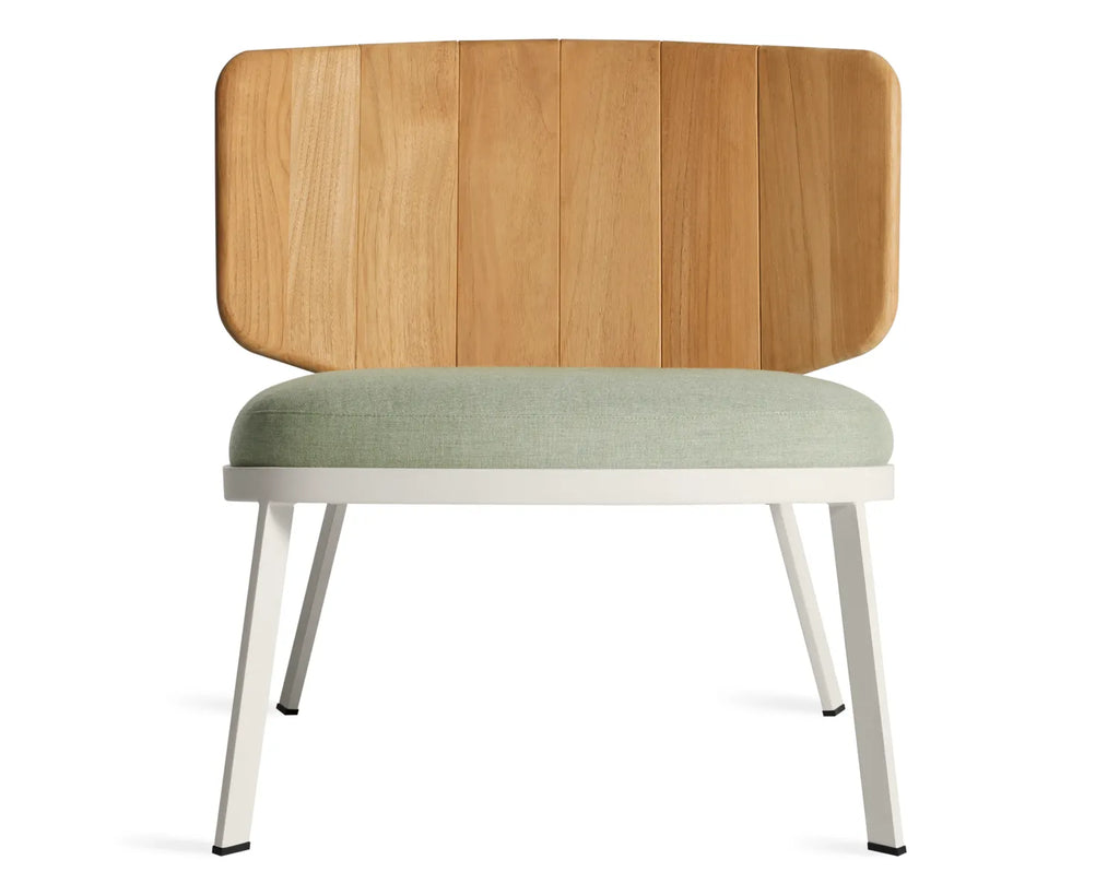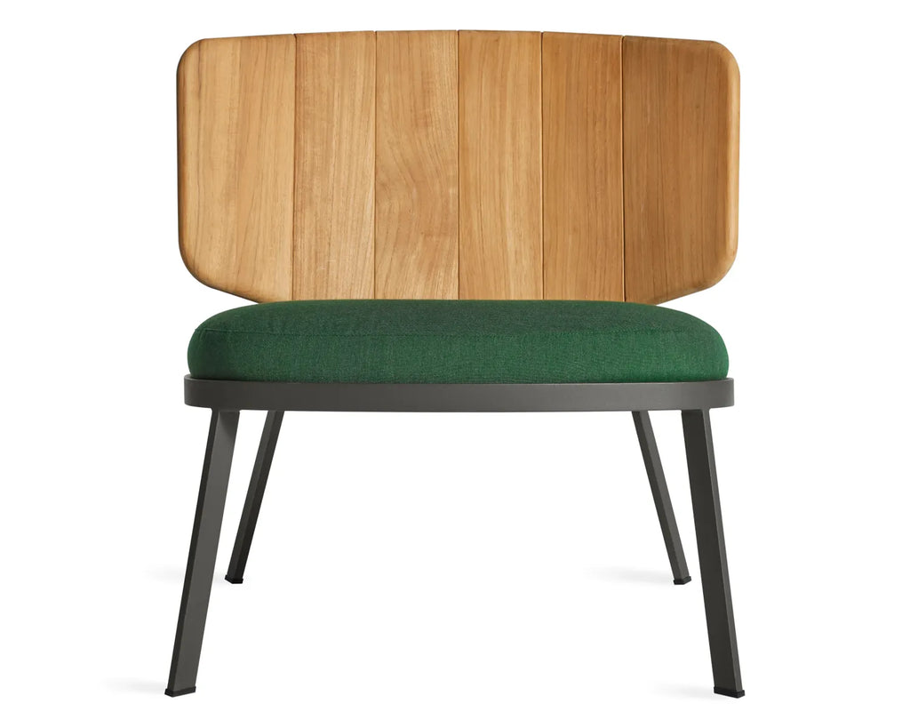 Party in the back. Solid FSC®-certified teak wood and a tidy, resilient cushion dole out soft shapes to form a supportive sidekick in any setting. Architectural powder-coated aluminum adds playful textural appeal and a touch of class. The result is a pleasing spot to see and be seated.